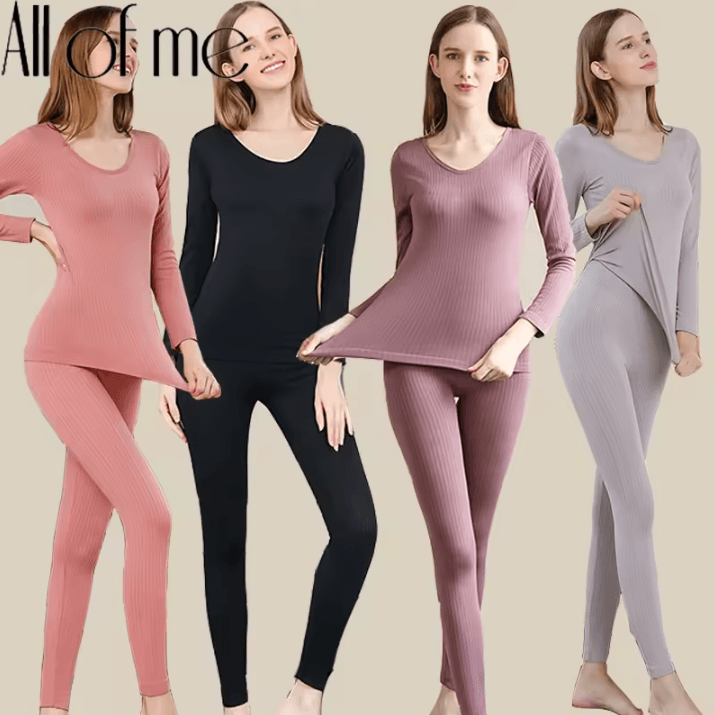 Warm Thermal Underwear Set Soft Long John Base Layer For Women 1 Set Pink