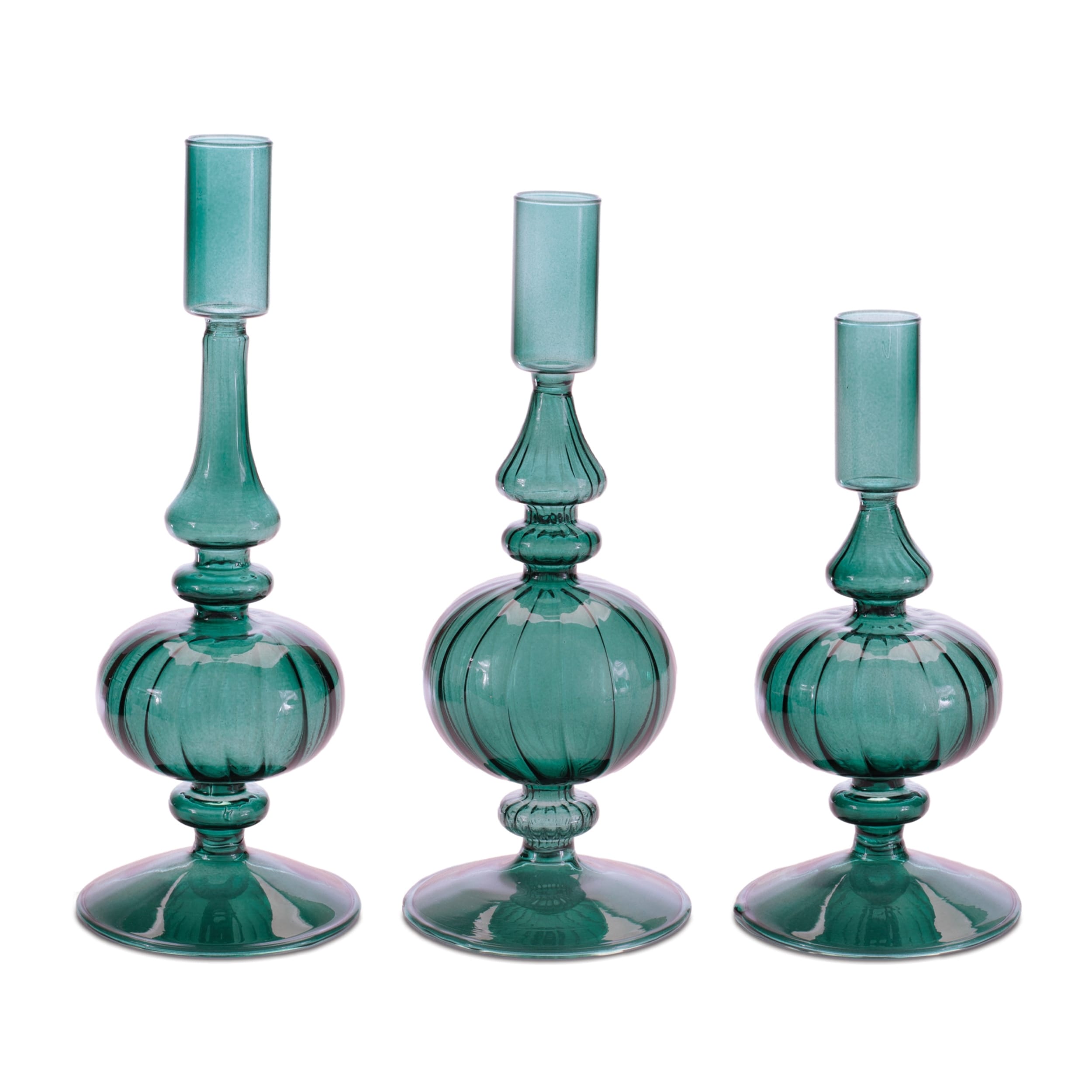 Ribbed Glass Taper Candle Holder (Set of 3)