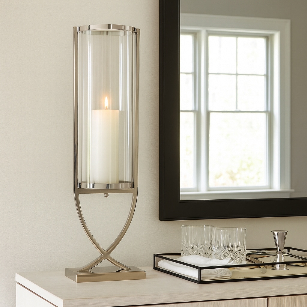 Salvador II Wood Base Brass Cube Tea Light Table Candle Holder