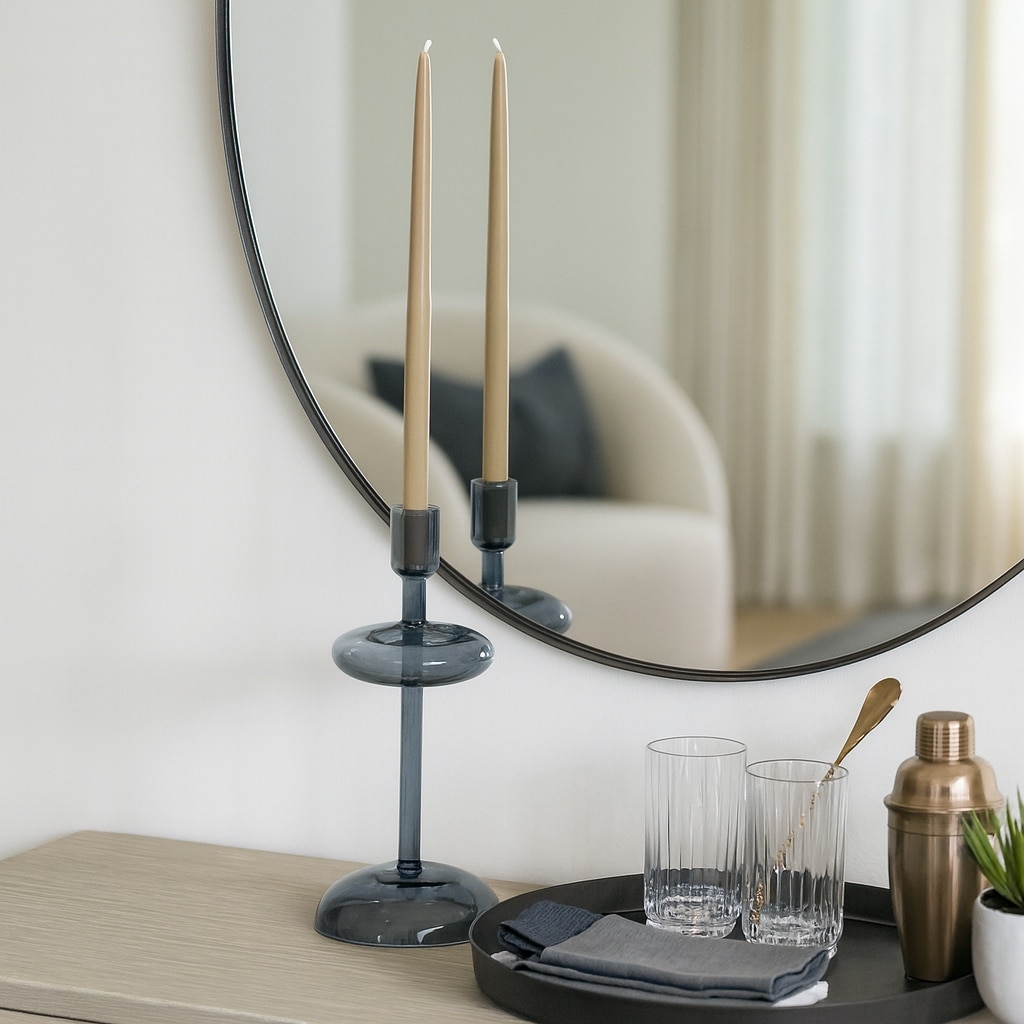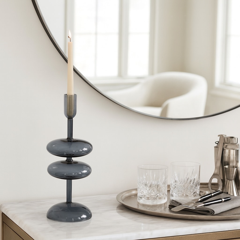 Glass Retro Bubble Modern Taper Candle Holder - Blue