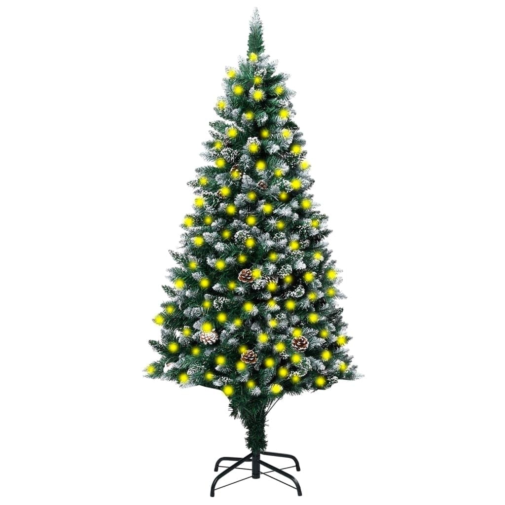 vidaXL Artificial Christmas Tree LEDs&Pine Cones&White Snow 82.7"