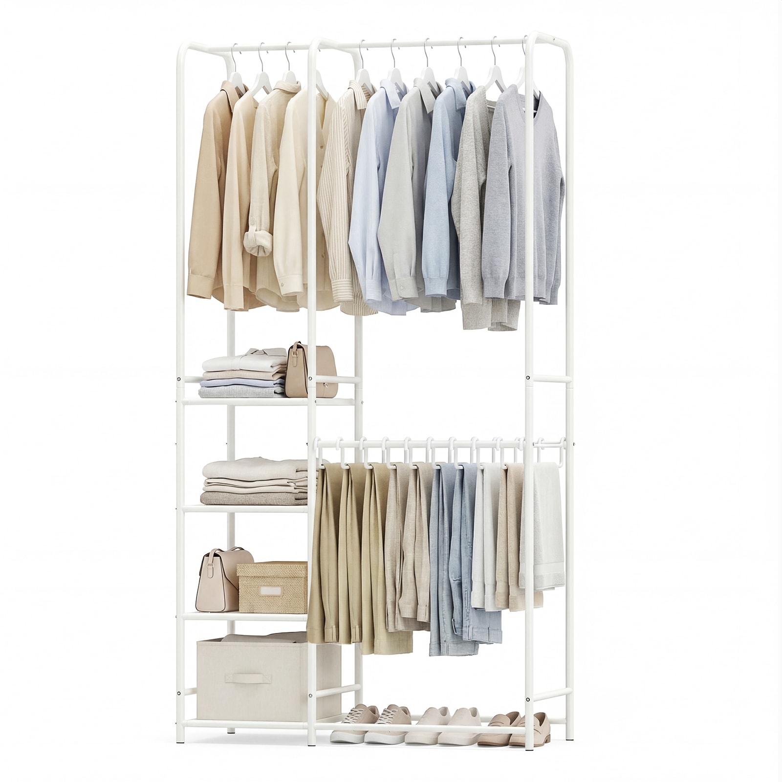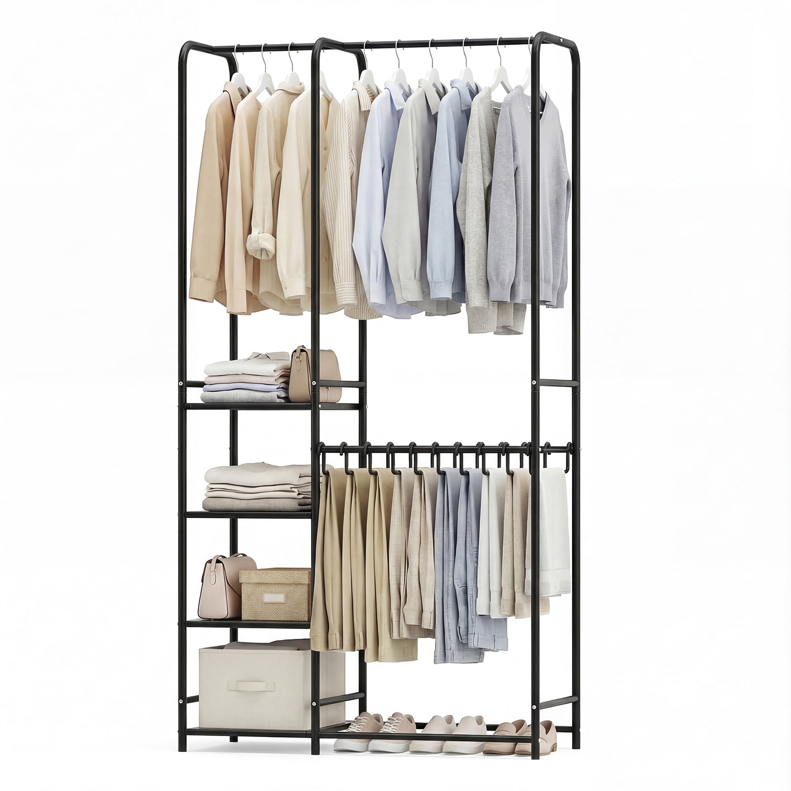 Gymax Portable Closet w/Pants Hangers 2 Hanging Rods 4 Storage Shelves