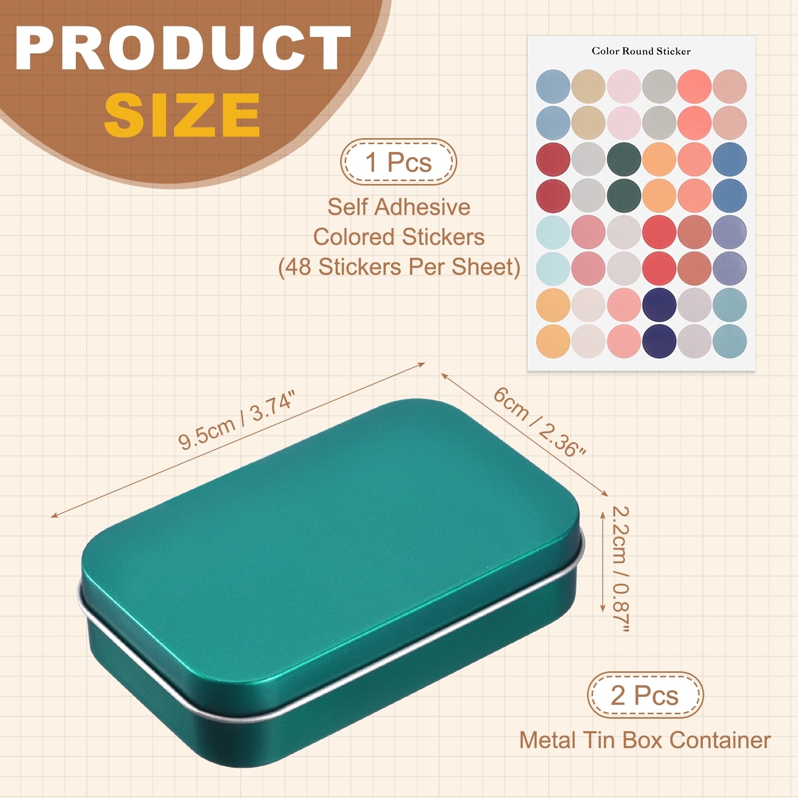 Metal Tin Box Container with Colored Stickers