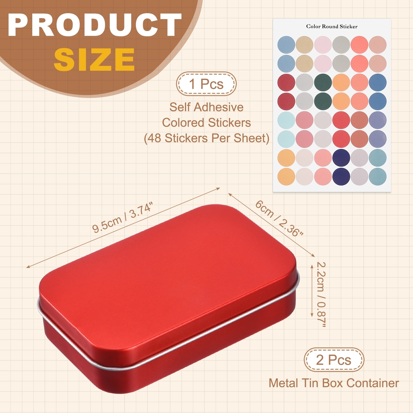 Metal Tin Box Container with Colored Stickers