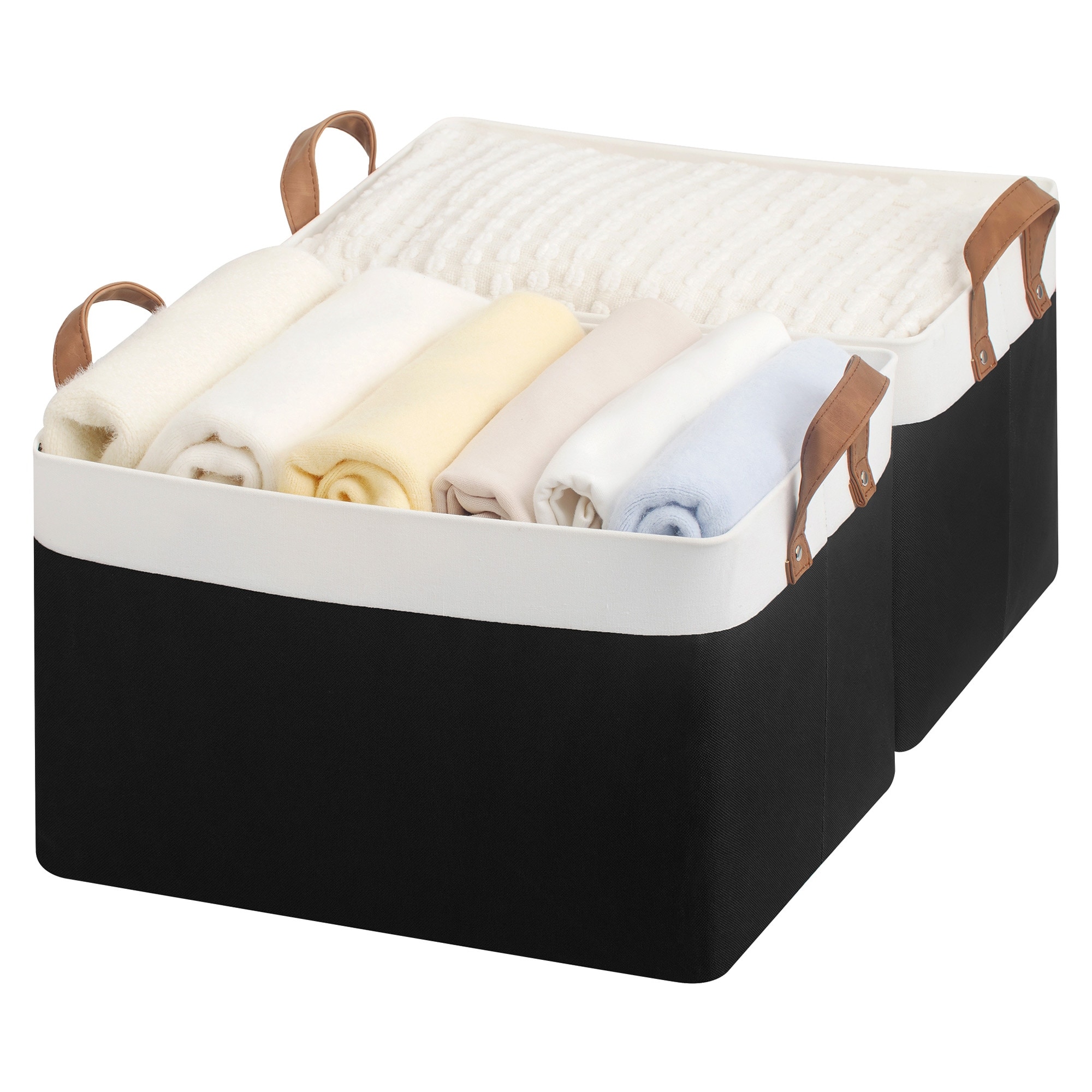 2-pack Fabric Foldable Storage Bins with Handles, Modern Storage Basket for Shelves, Closet, Dorm