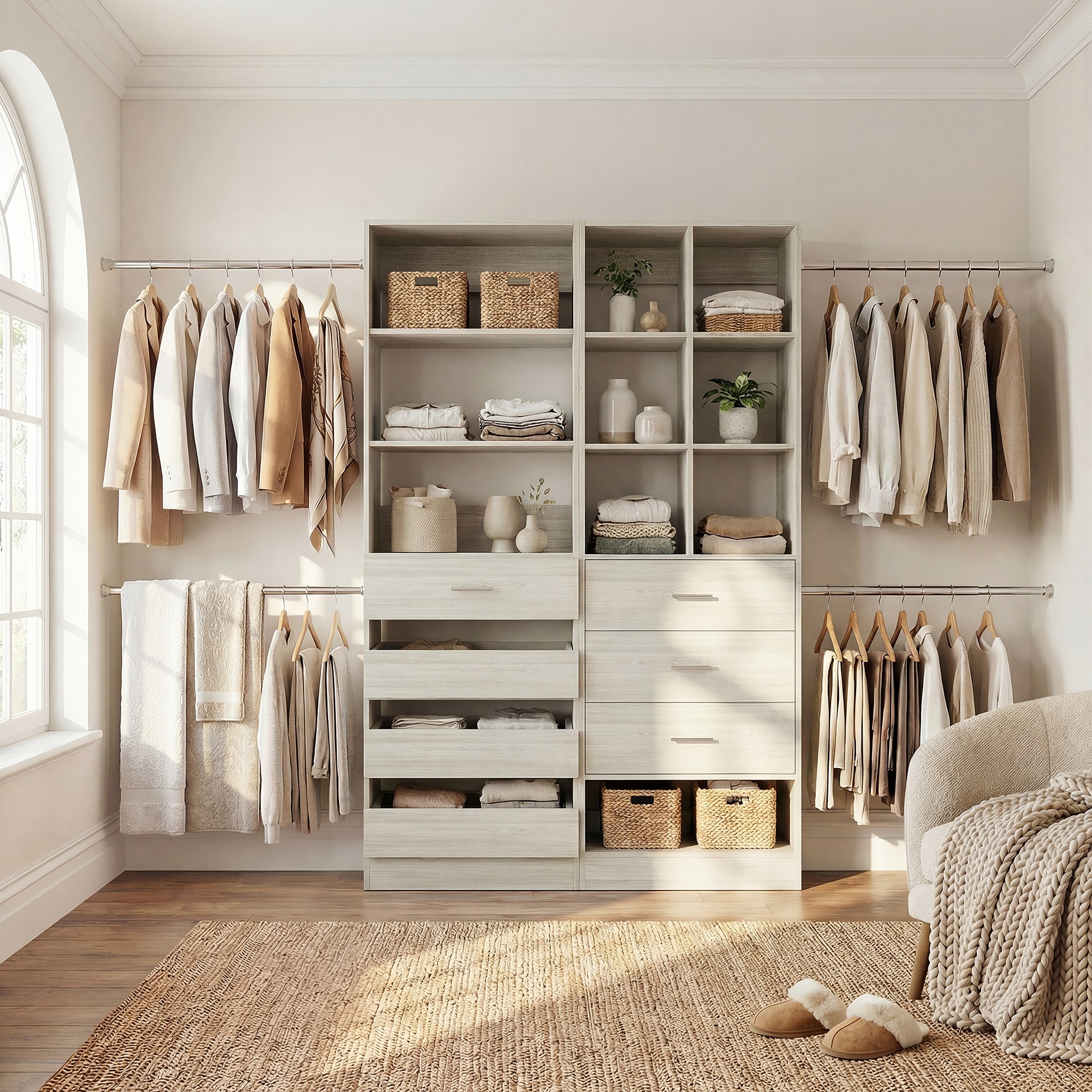 Navada Set of 2 Freestanding Closet Organizer with Hanging Rods and Drawers, Closet System for Walk-in Closet