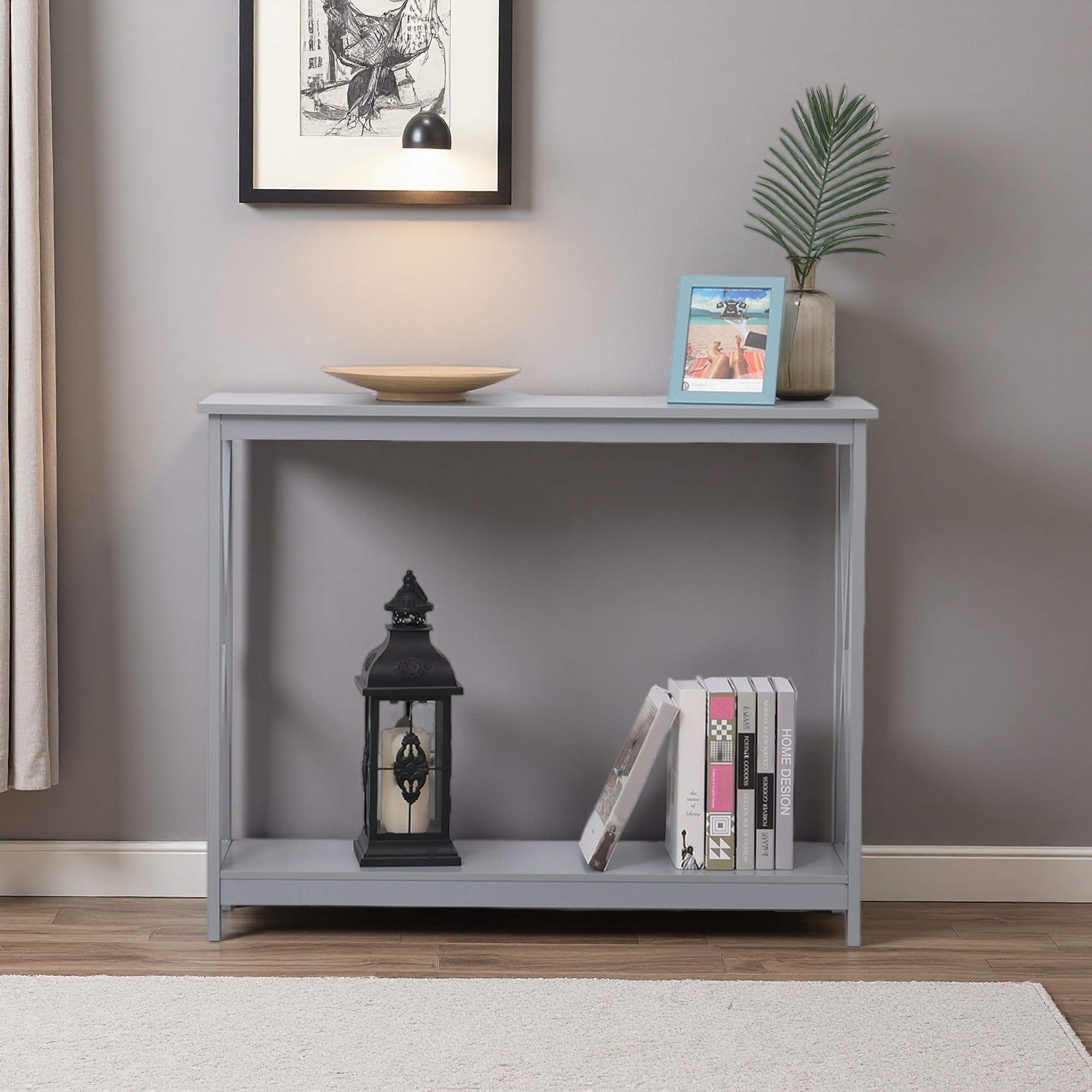 39.5" 2-Tier Console Table with X Design and Storage Shelf - Versatile Sofa Side Table for Entryway, Living Room, and Hallway