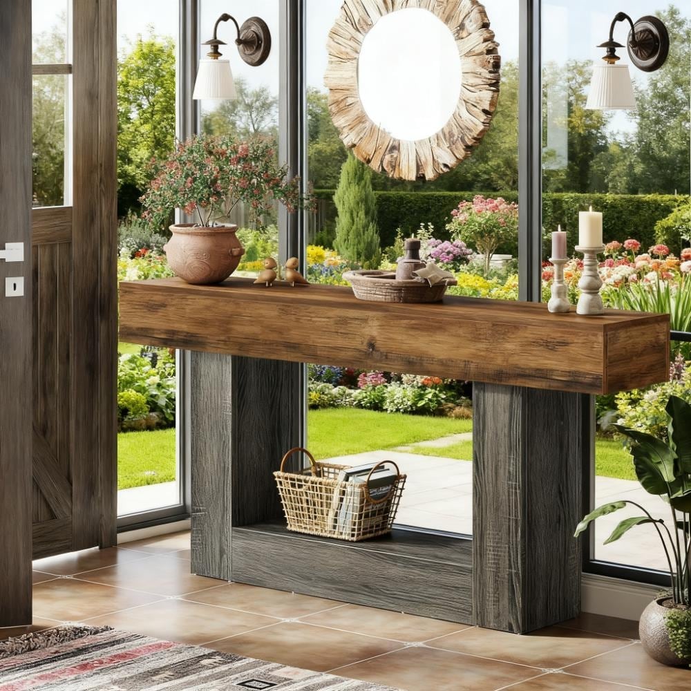62.99'' Wooden Console Table, Narrow Long Wood Sofa Table, Living Room Table