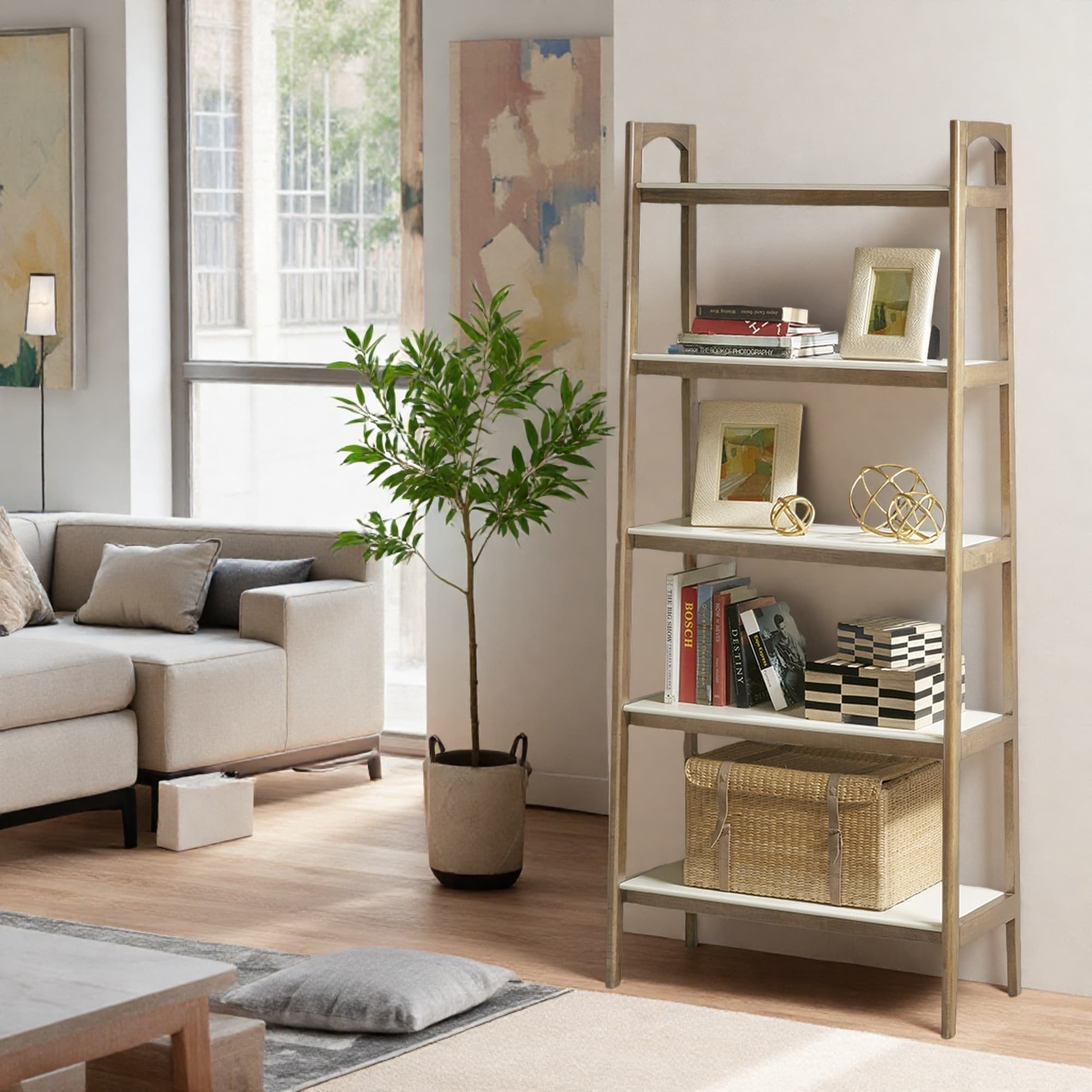 31" Mid-Century Bookcase with 5 Shelves, Two-Tone