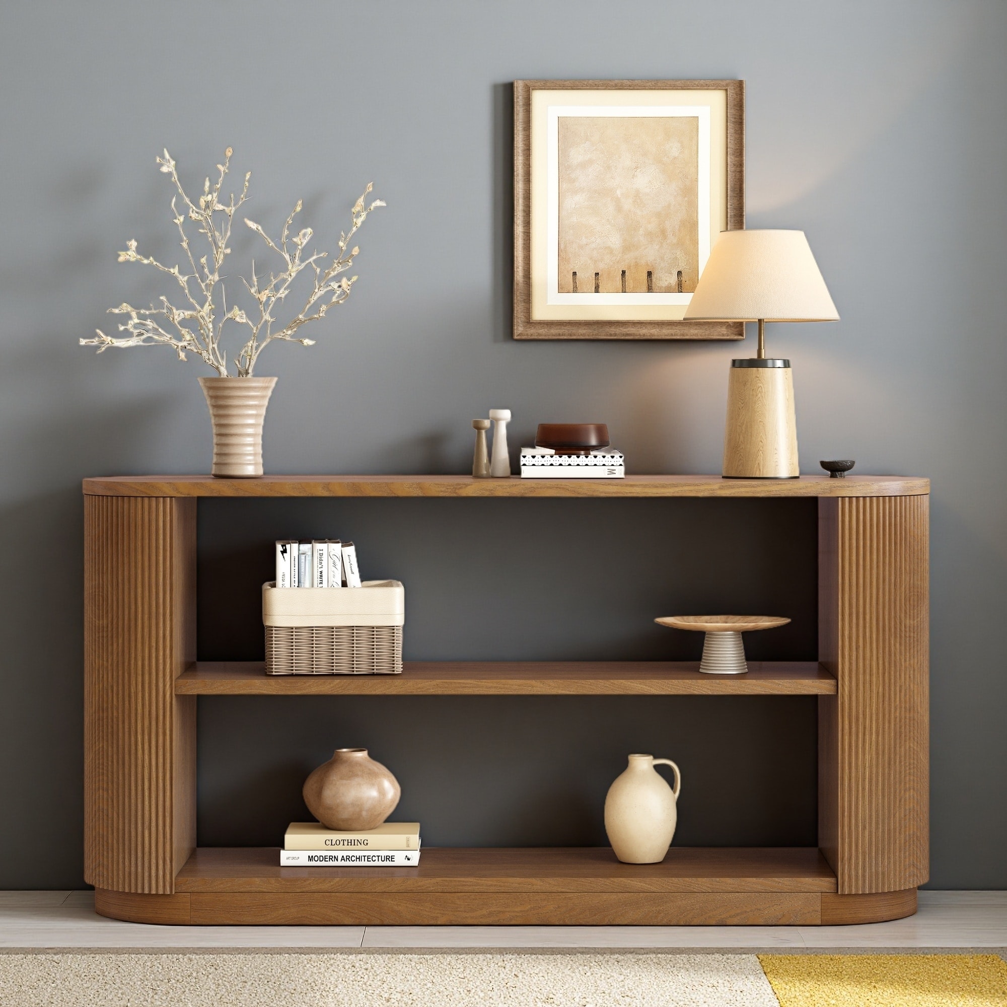 Wood Entryway Entry Table with 3 Arched Shelves for Foyer