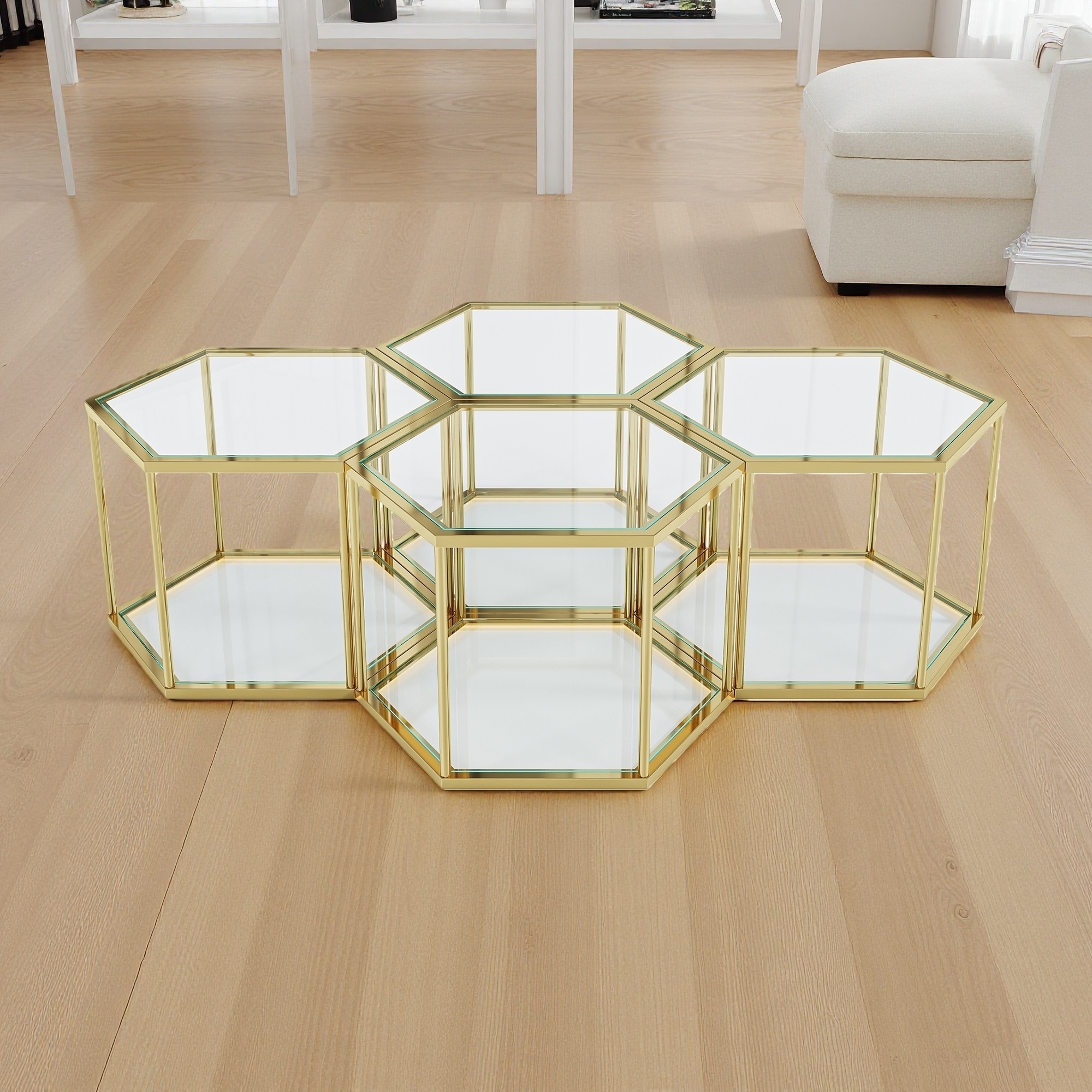 4-Piece Stainless Steel Coffee Table Set with Glass Layers