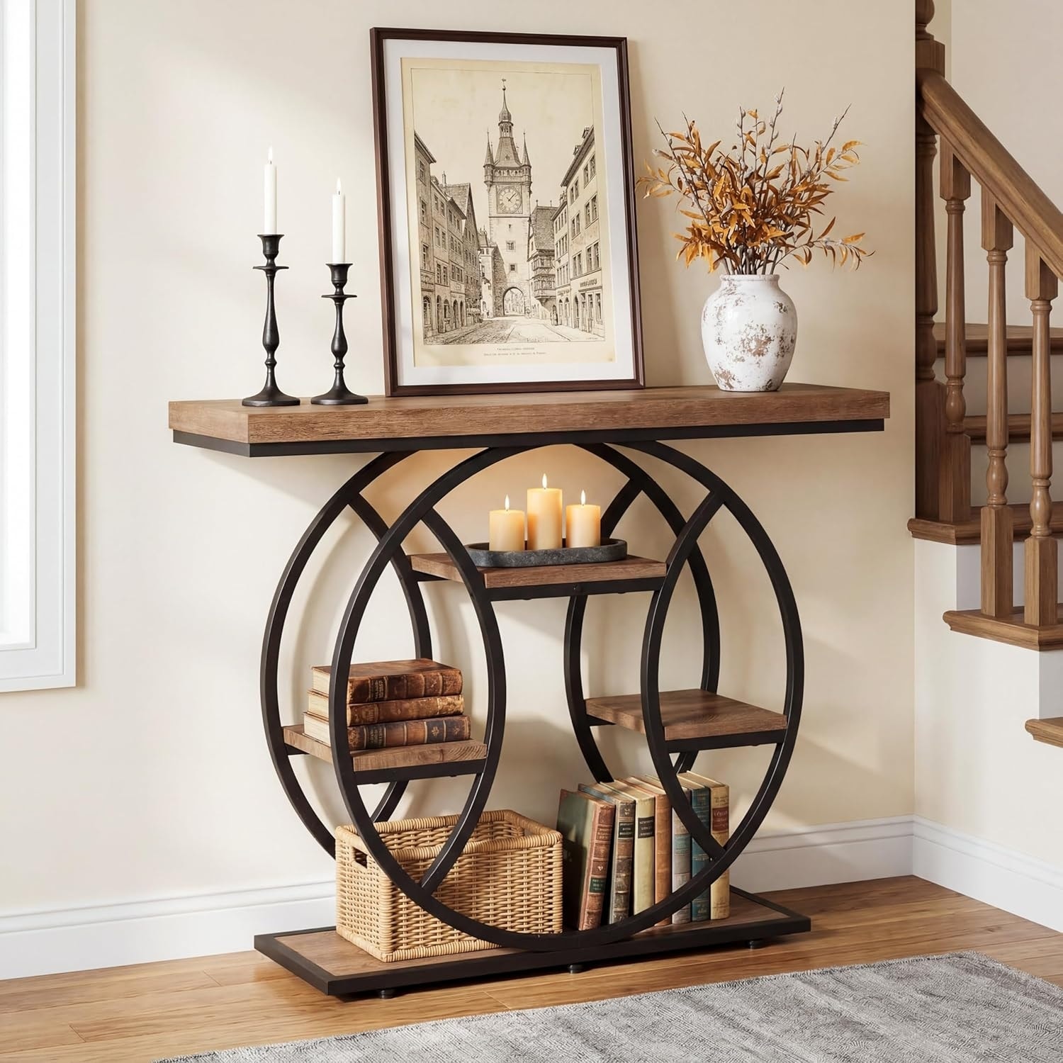 41.3” Console Tables for Entryway, 4-Tier Industrial Narrow Sofa Hallway Table with Shelves - 41.3" L x 13.8" W x 33.5" H