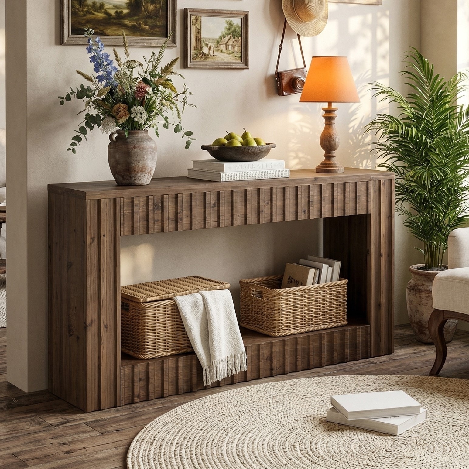 Roomfitters Modern Farmhouse Console Table, Elegant Minimalist Design with Premium Wood Veneer and Rounded Corners