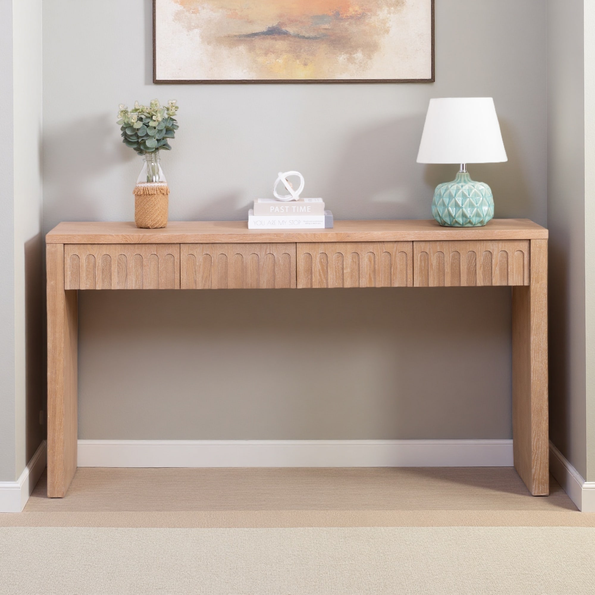 U Style Acacia Wood Veneer Entryway Table With Wavy Design