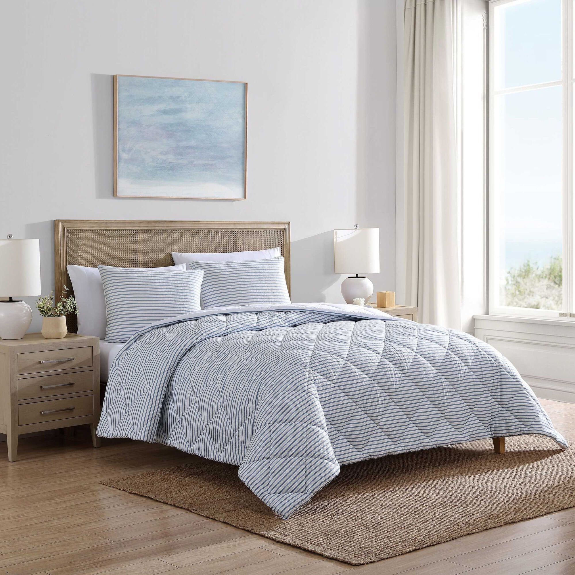 Coleridge Stripe Blue Full Queen Quilt-Sham Set