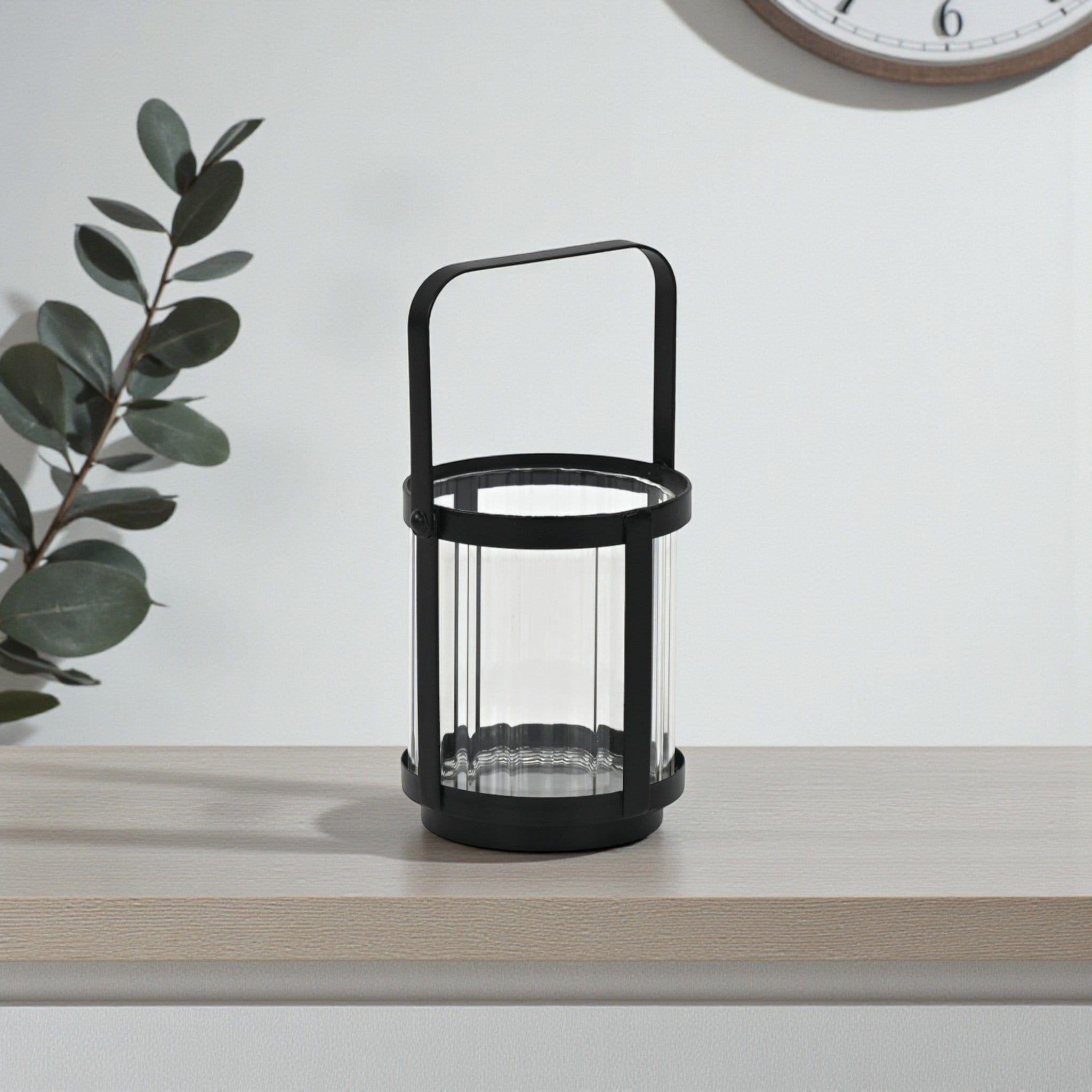 Vortial Fluted Glass Candle Lantern with Black Metal Frame