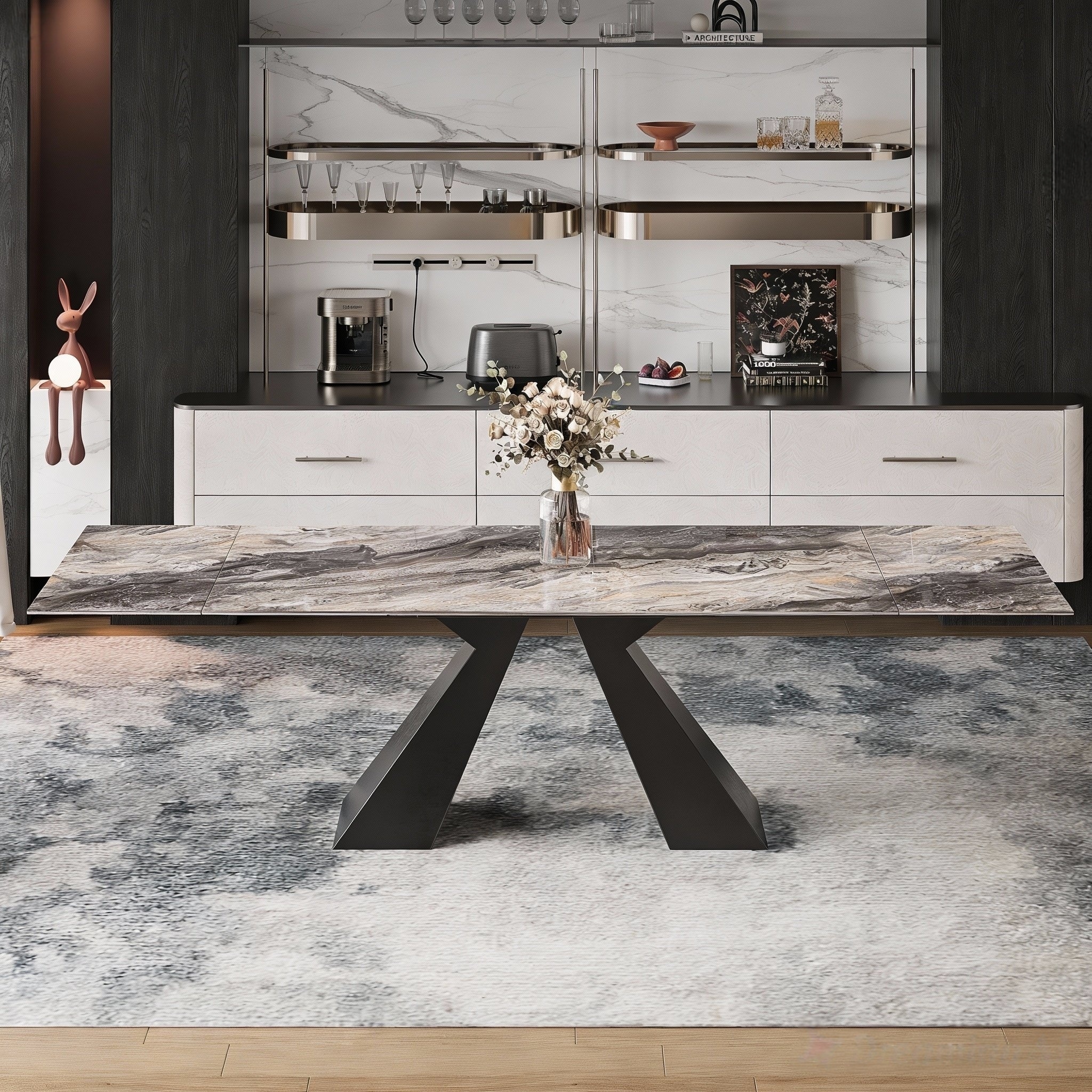 94.48" Extendable Rectangular Sintered Stone Double Pedestal Dining Table Seat 8-10 - 94.48"