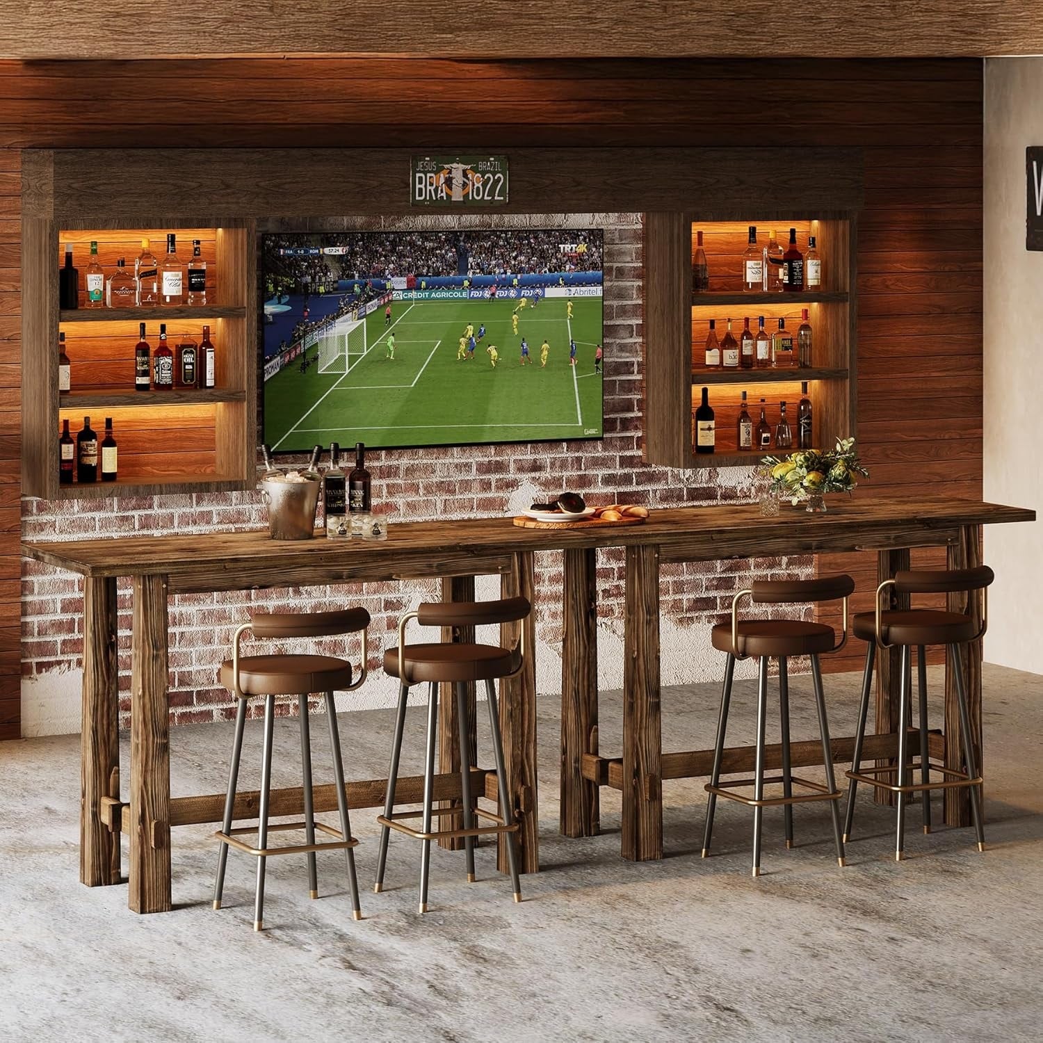 63-Inch Solid Wood Dining Table, Bar Height with Footrest for Kitchen, Café or Restaurant, Patio