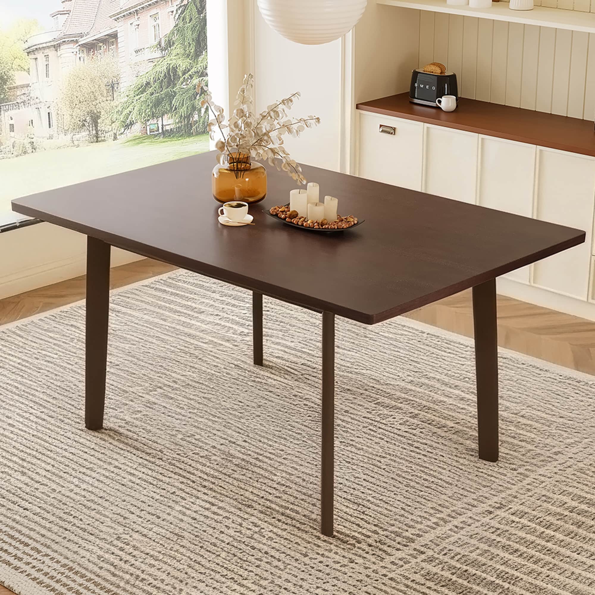 Roomfitters 60" Farmhouse Dining Table, Rectangular Kitchen Table with Solid Wood Leg, Minimalist Dining Table for Home