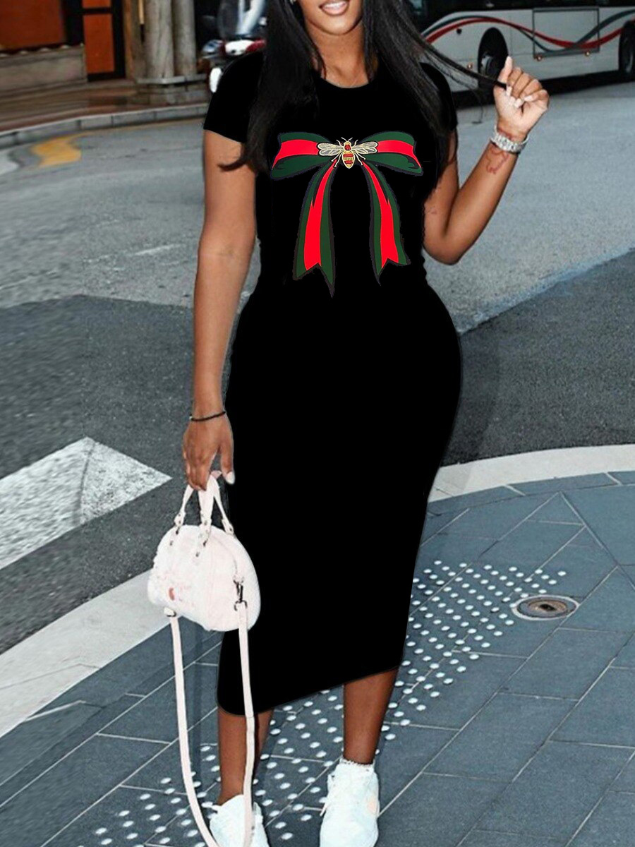 Summer Women Short Sleeve Dresses, Ladies Solid Color O Neck, Bodycon Stretch Slim Mini Dress For Casual Wear gray l