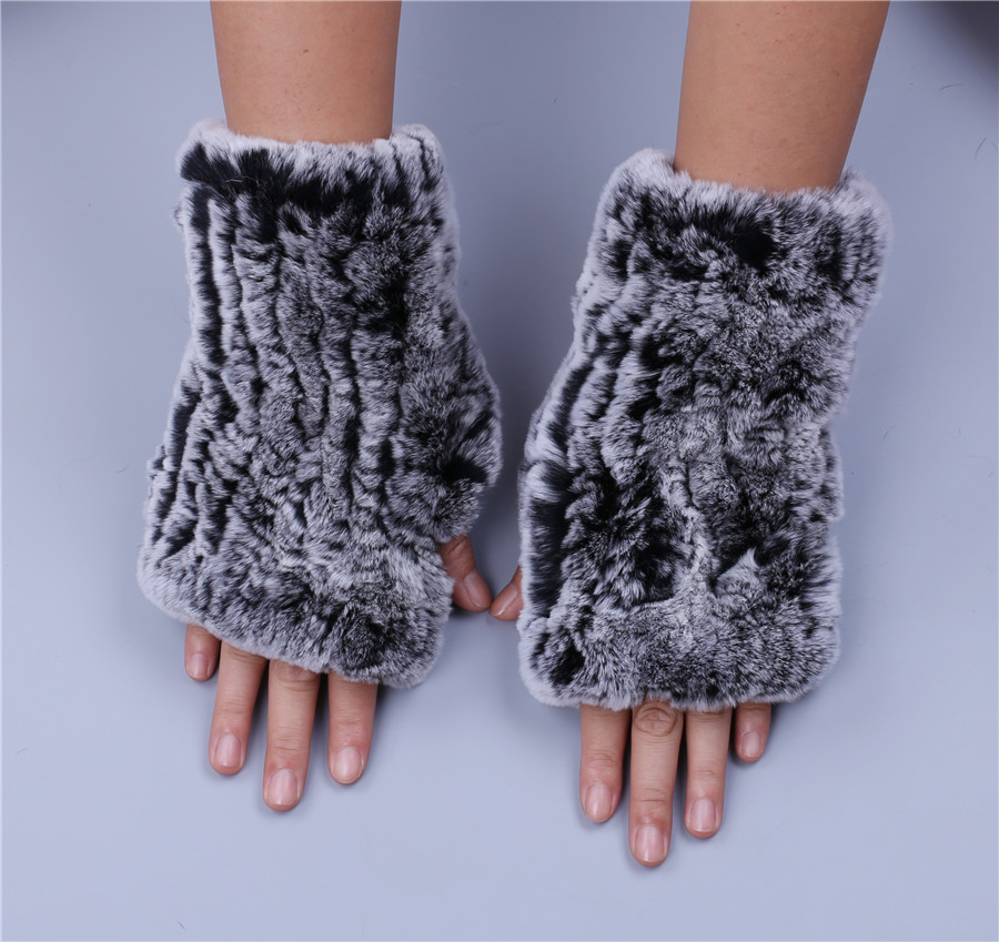 Rex Rabbit Fur Fingerless Gloves For Women Soft Real Fur Winter Mittens Wrist Warmers black