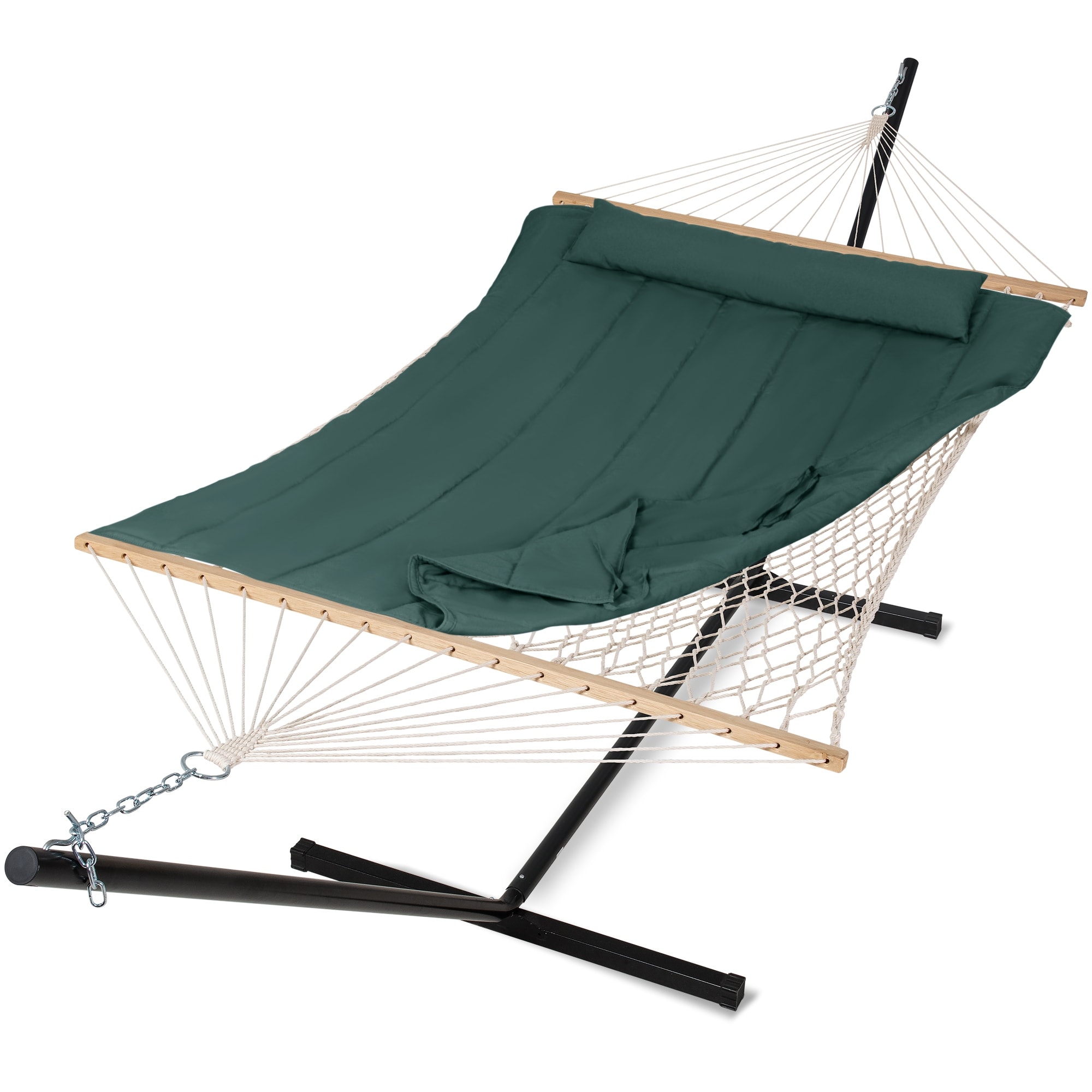 Rope Hammock with Detachable Pillow and Pad, 12FT Steel Stand Included