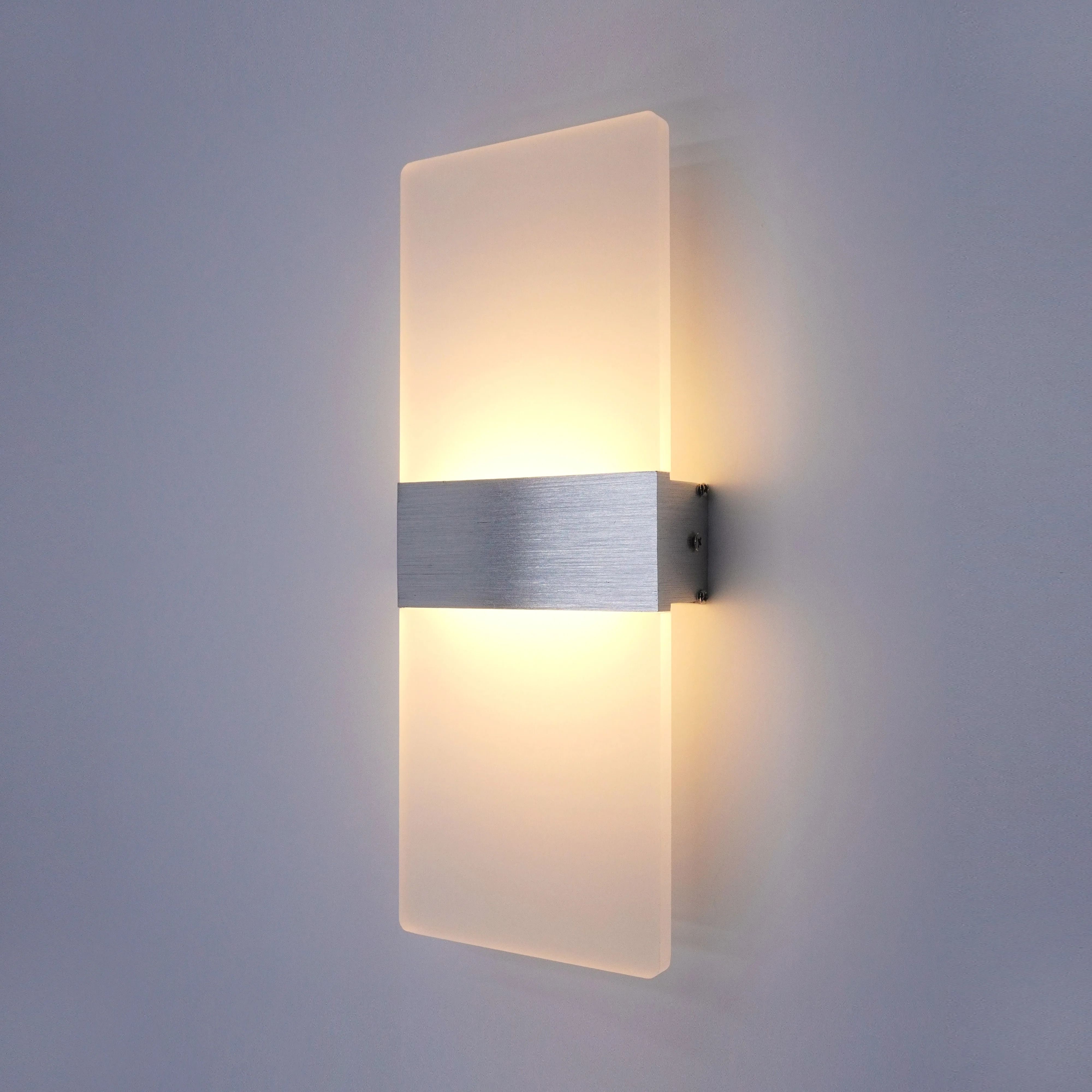 LumiEdge Modern LED Wall Lamp Minimalist Aluminum Acrylic Wall Sconce silver 12w warm White (2700 3500k)
