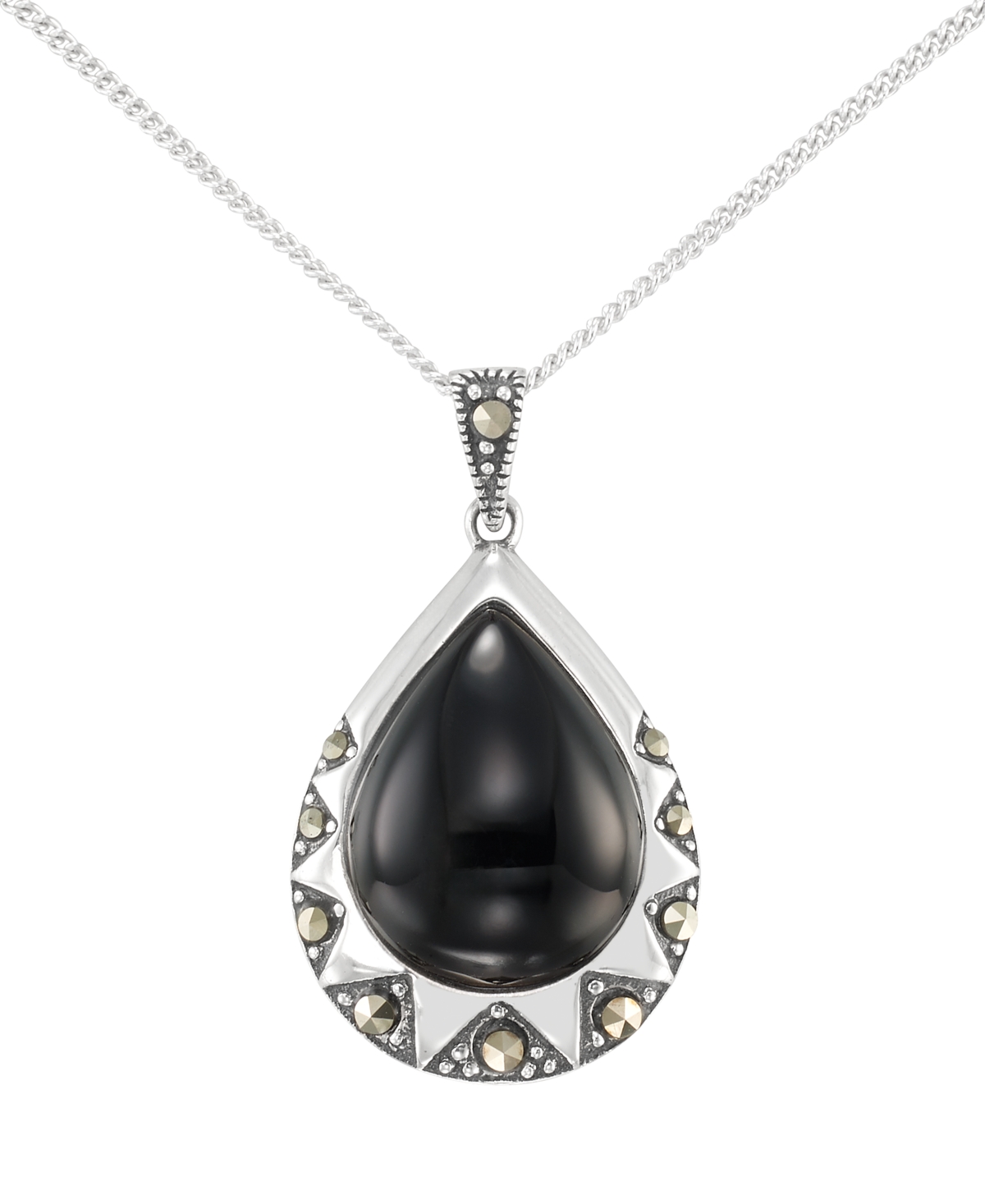 Macy's Marcasite (0.19 ct. t.w.) and Onyx (3-1/2 ct. t.w.) Teardrop Pendant Necklace in Sterling Silver - Onyx