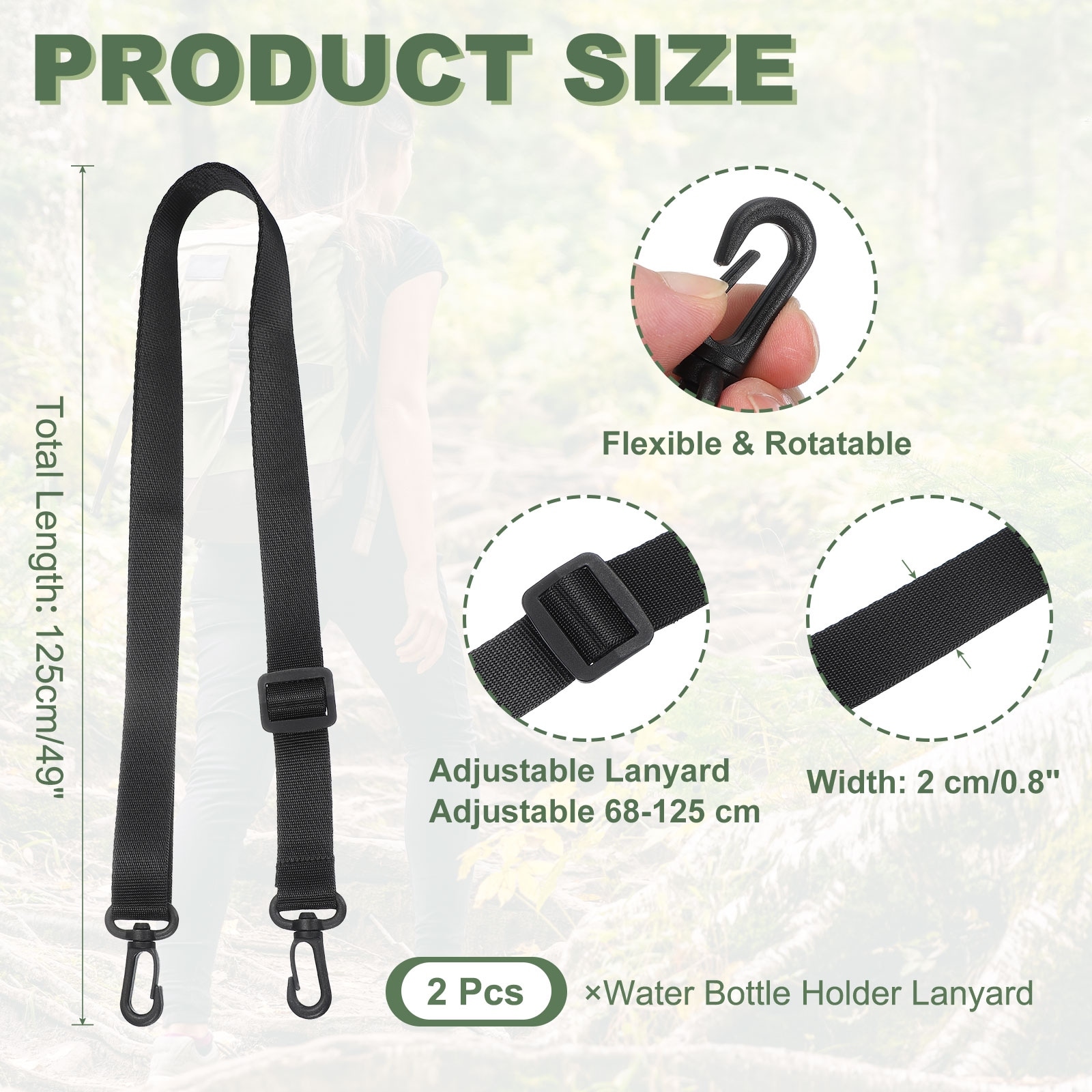 Polyester Adjustable Water Bottle Holder Lanyard Bottles Strap, Black/2 PCS - Khaki