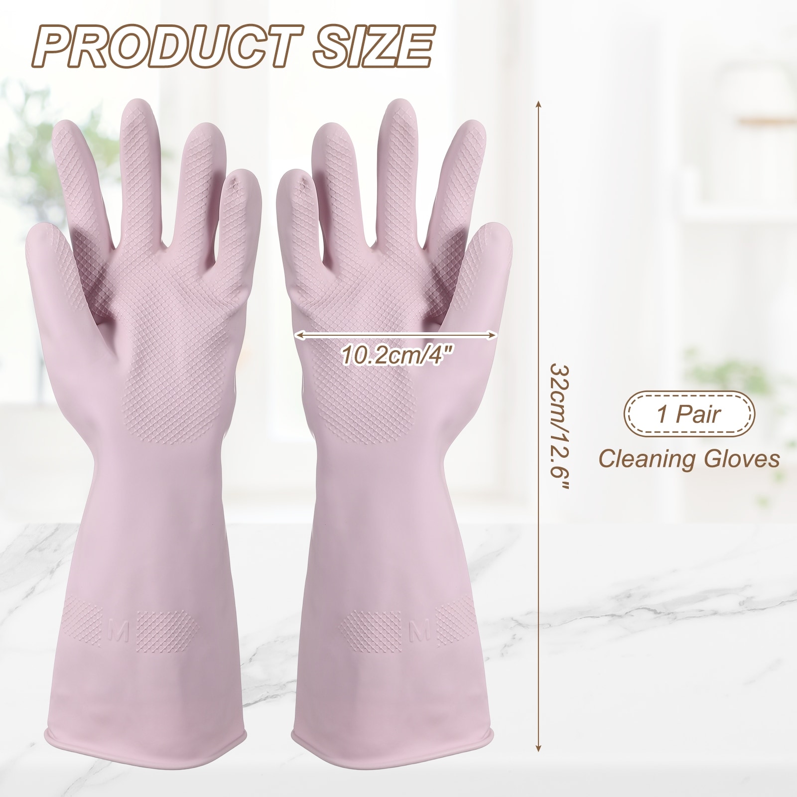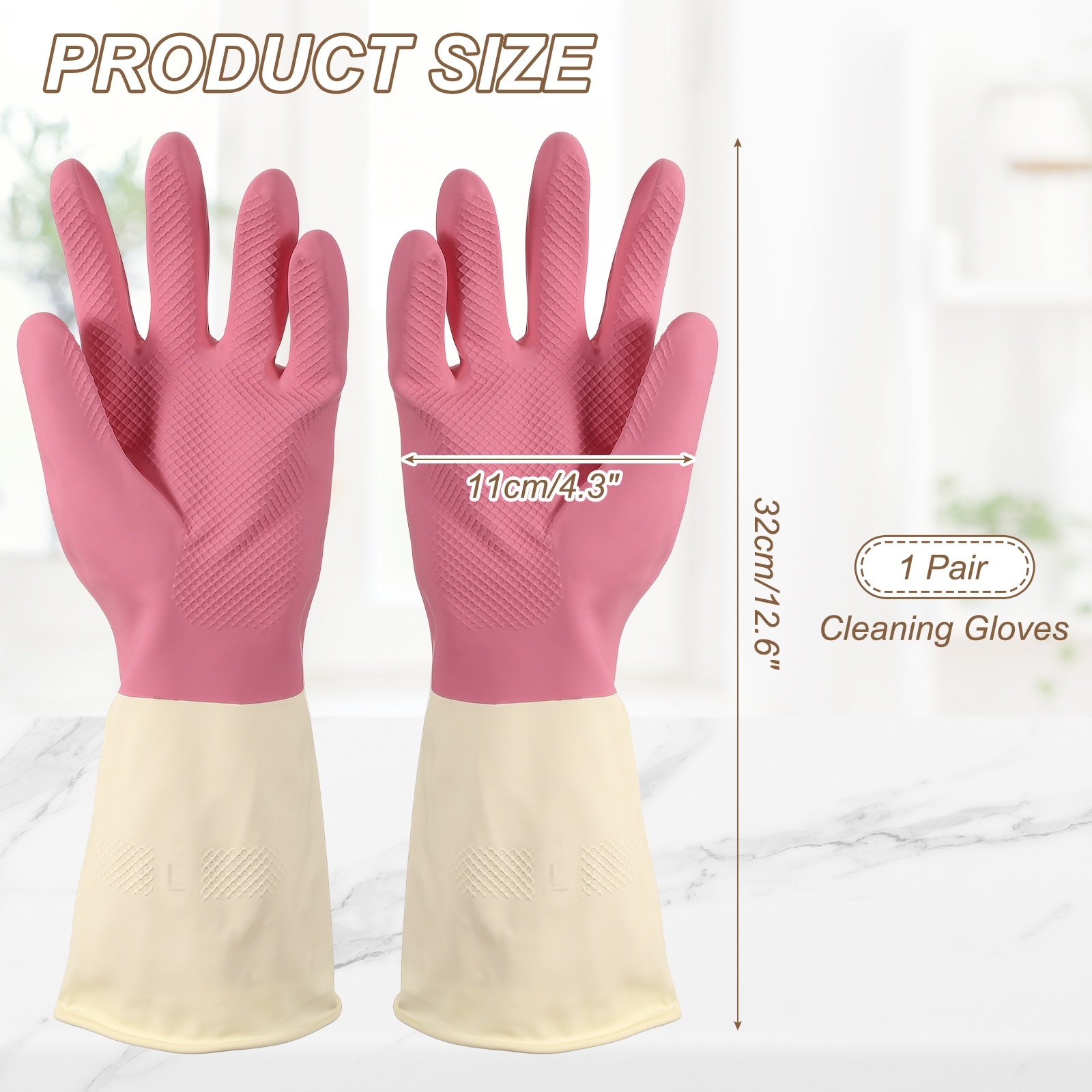 Rubber Cleaning Gloves, Reusable Household Dishwashing Long Rubber Gloves with Non-slip Grip