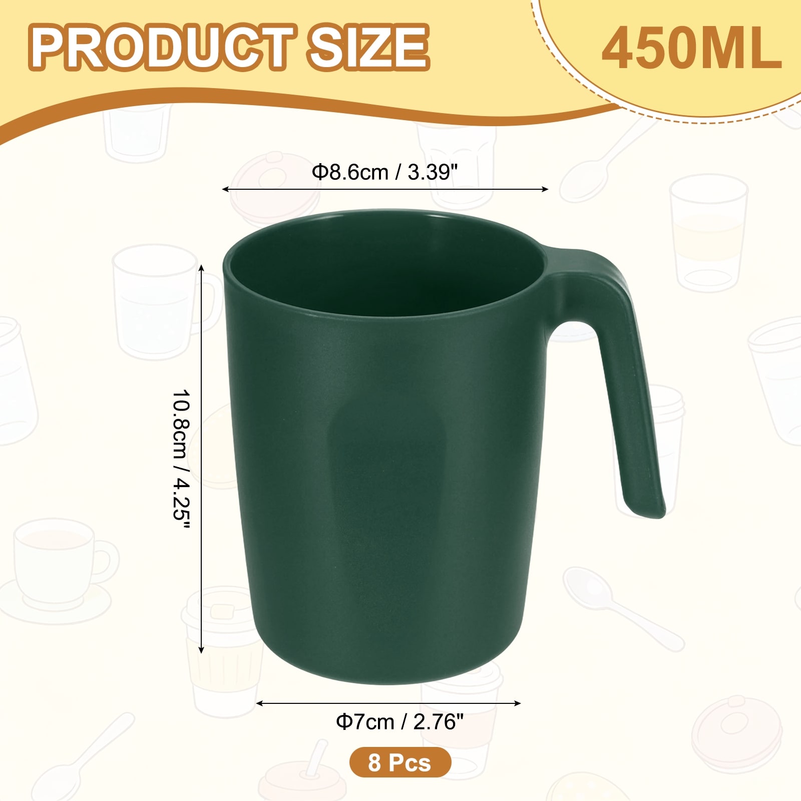 Set of Plastic Coffee Mugs, Unbreakable Coffee Mugs, Reusable Microwave Safe Drinking Cups with Handle for Tea
