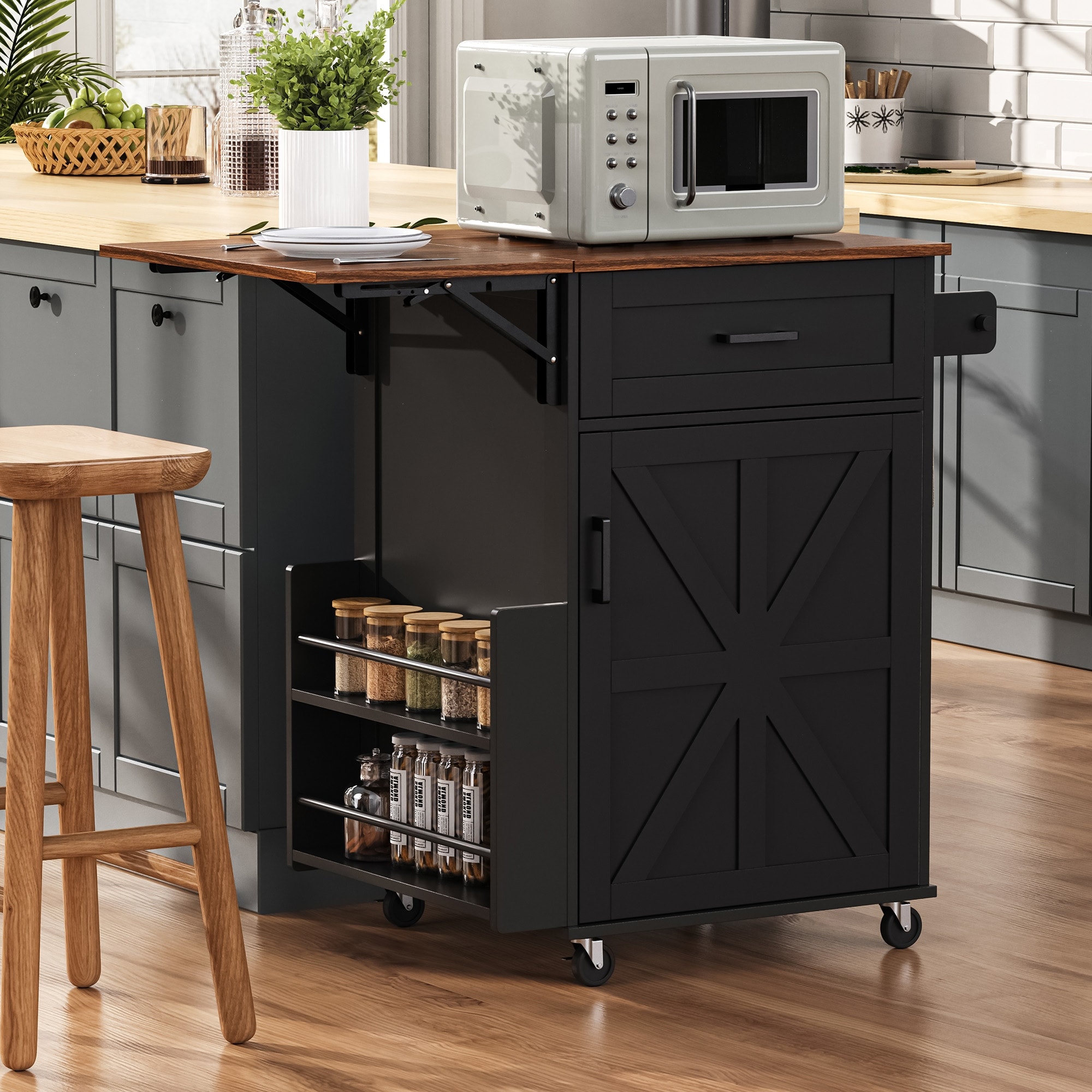 Rolling Kitchen Island with Drop Leaf & Adjustable Shelf, Mobile Kitchen Cart with Foldable Drop Leaf