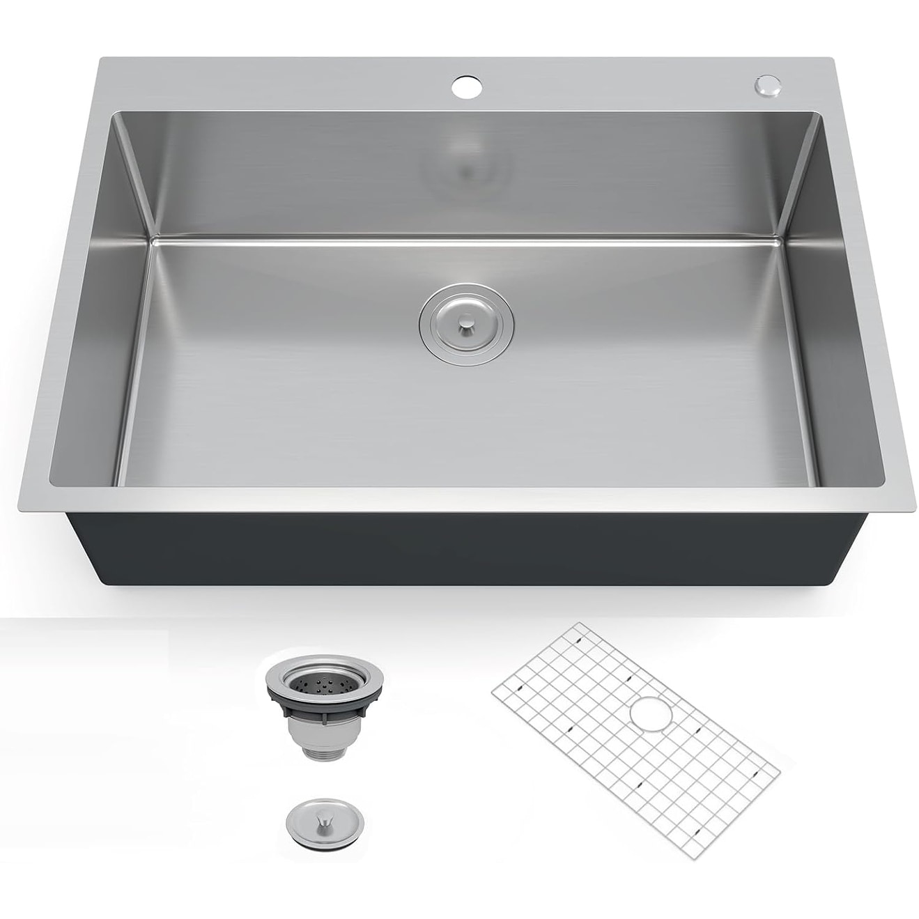 30" Drop-in Kitchen Sink Soap Dispenser 30x22x10 inch Single Bowl 16 Gauge Stainless Steel Topmount Kitchen Sink Basin