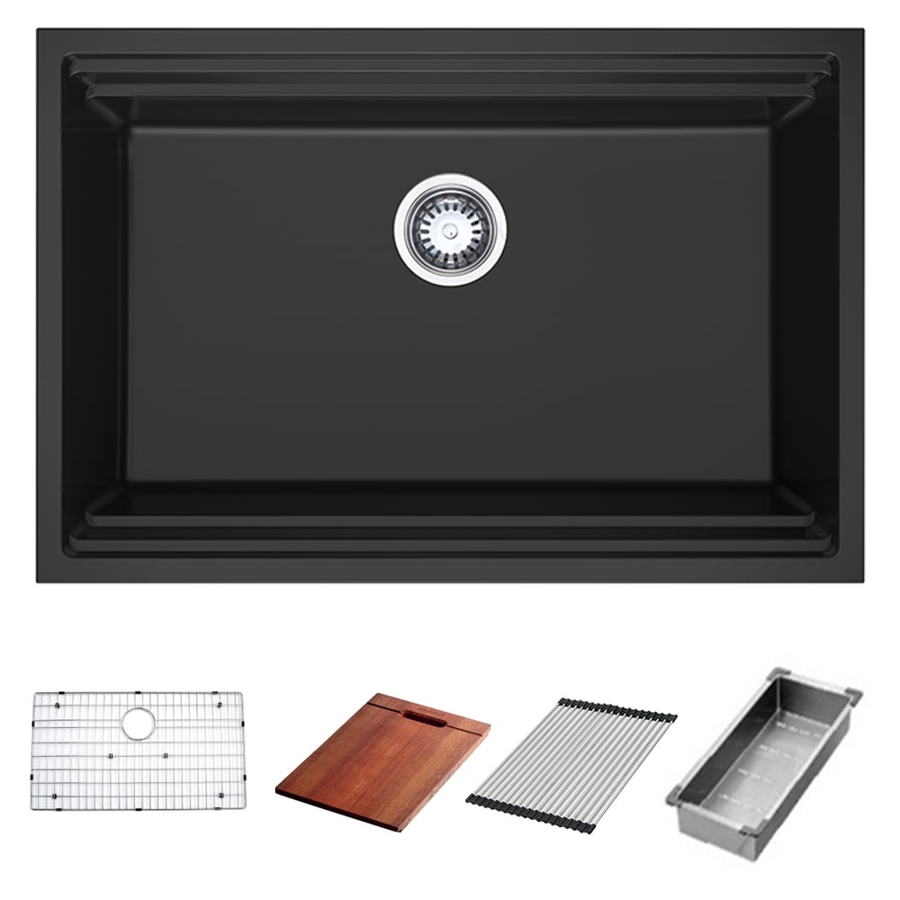 HIGOLD 30 inch Single Bowl Quartz Kitchen Sink in Black,Undermount Workstation with Cutting Board Accessories,30"×20"×9"