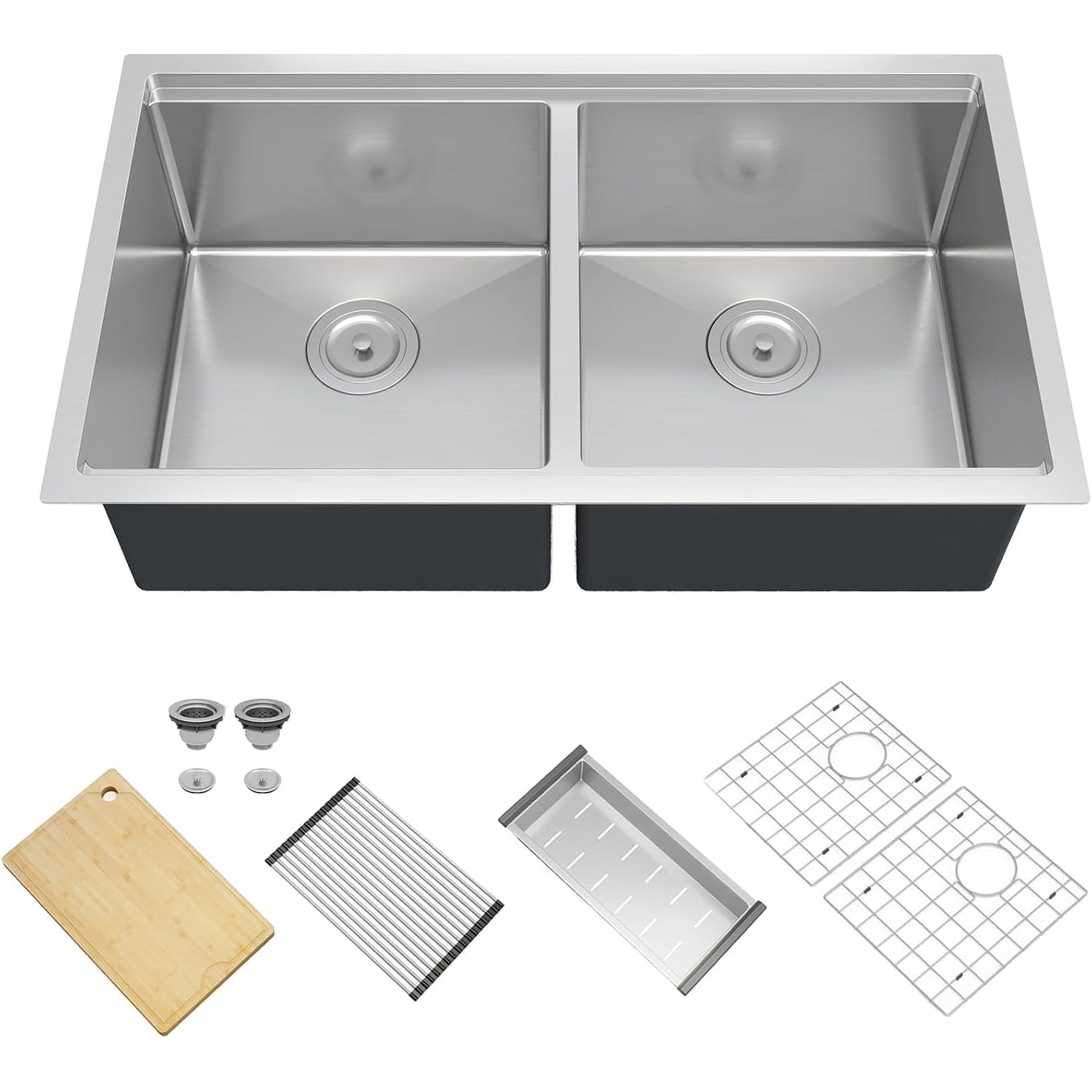 36" Dual Mount Double Bowl Sink With Accessories