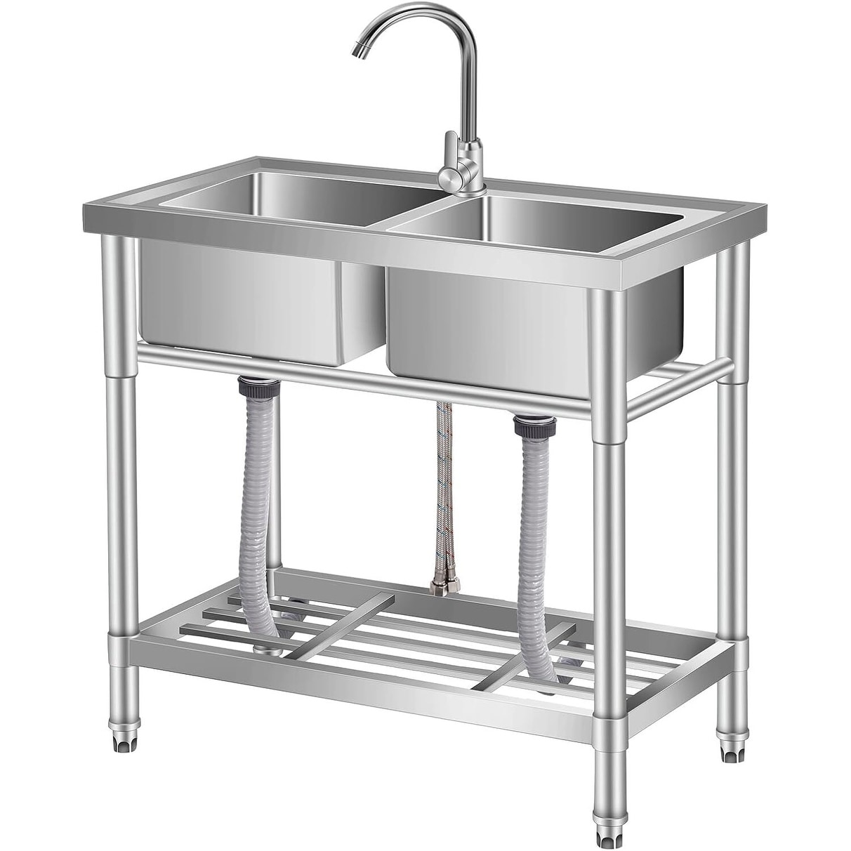 Stainless Steel Sink With Faucet, Shelf & Hooks