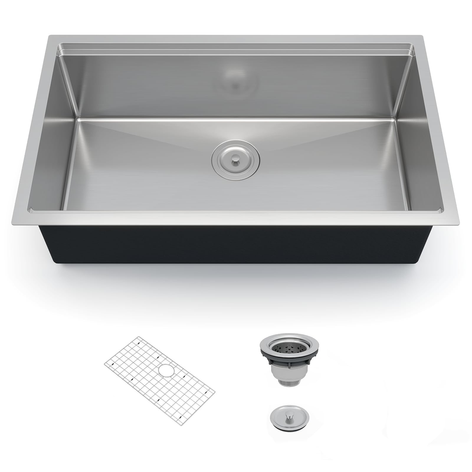 30/33 Inch Undermount Workstation Kitchen Sink, Single Bowl Ledge Design with Bottom Grid & Drain Kit