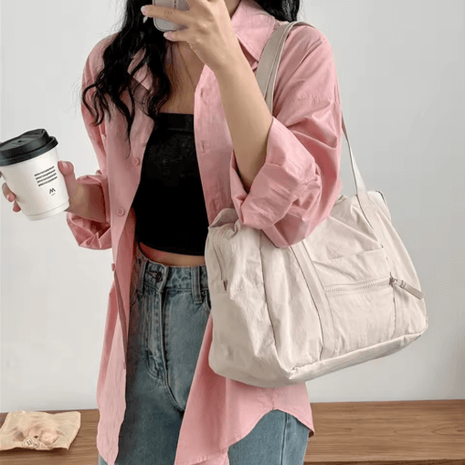 Large Capacity Urban Minimalist Shoulder Bag, Canvas Tote For Female Students, Portable Crossbody Commuting Bag white