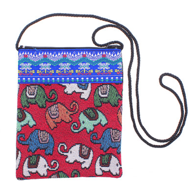 Red Customs,'Traditional Floral Patterned Red Beaded Cotton Sling'