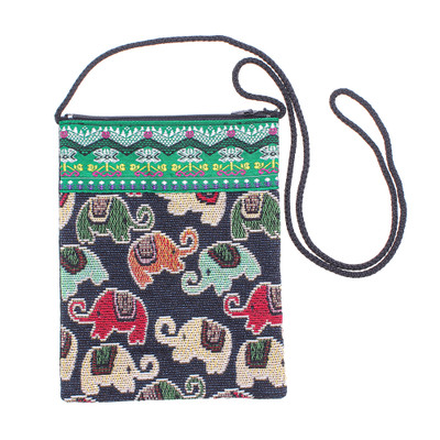 Many Elephants in Blue,'Thai Handcrafted Cotton-Blend Sling'