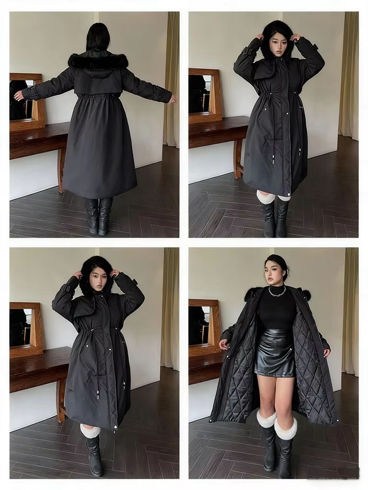 Plus Size Hooded Furry Winter Cotton Jacket Windproof Thickened Plush Warm Coat 1xl(us 14)