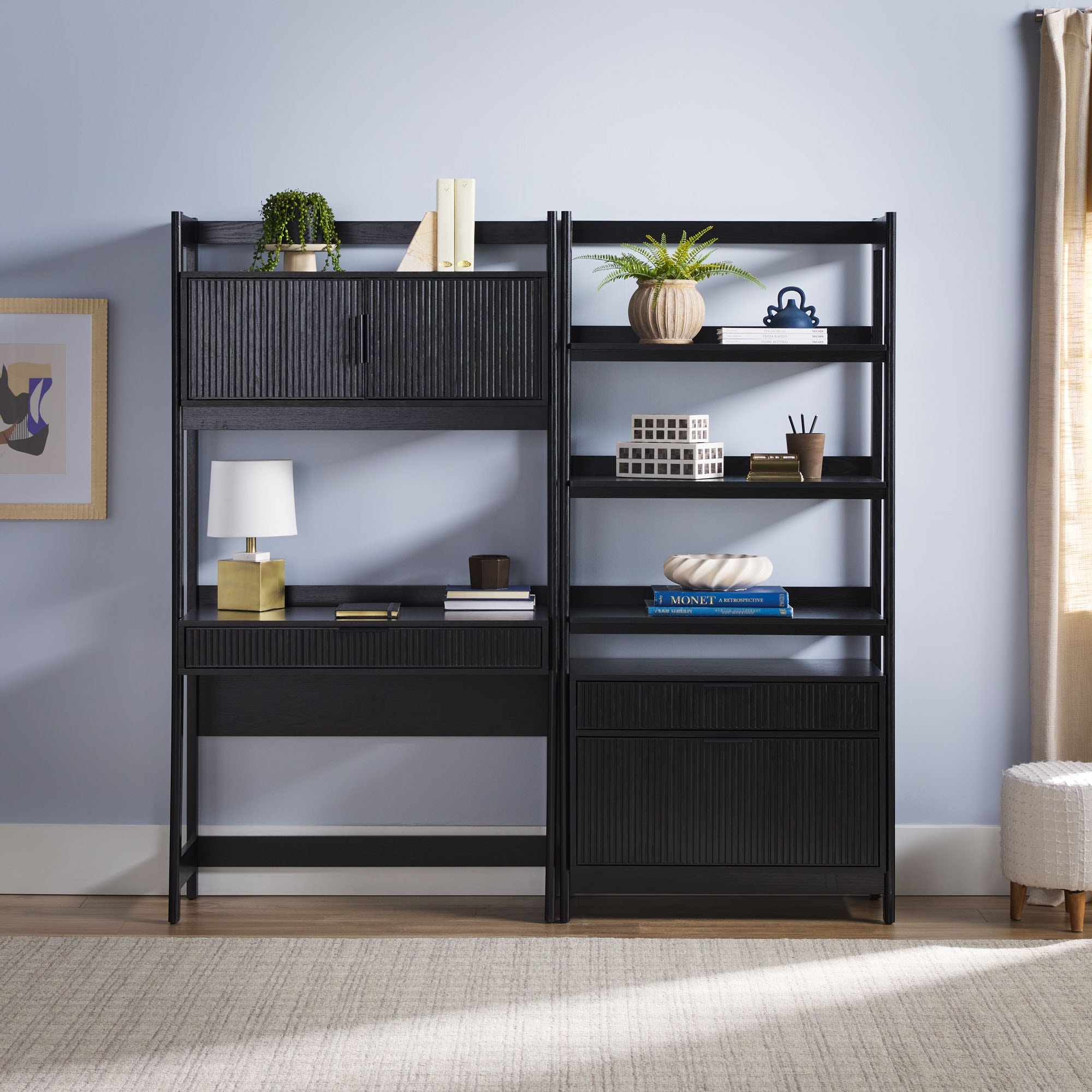 Walker Edison Hutch Desk with Wide Bookcase