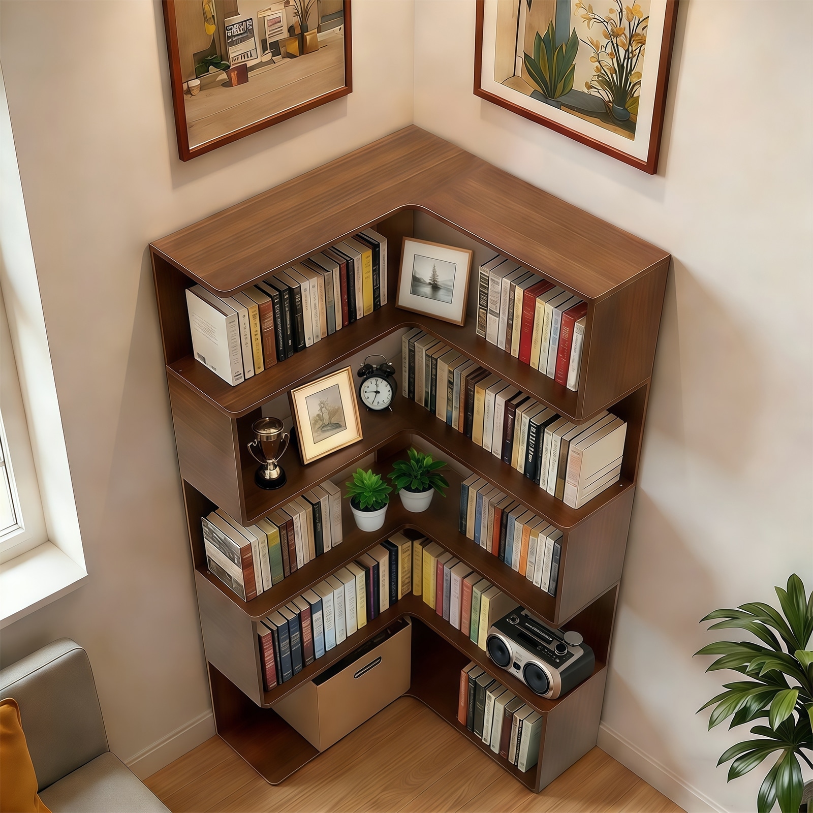 Six Tier Corner Bookshelf L Shaped Bookshelf With Baffle Freestanding Display Shelf