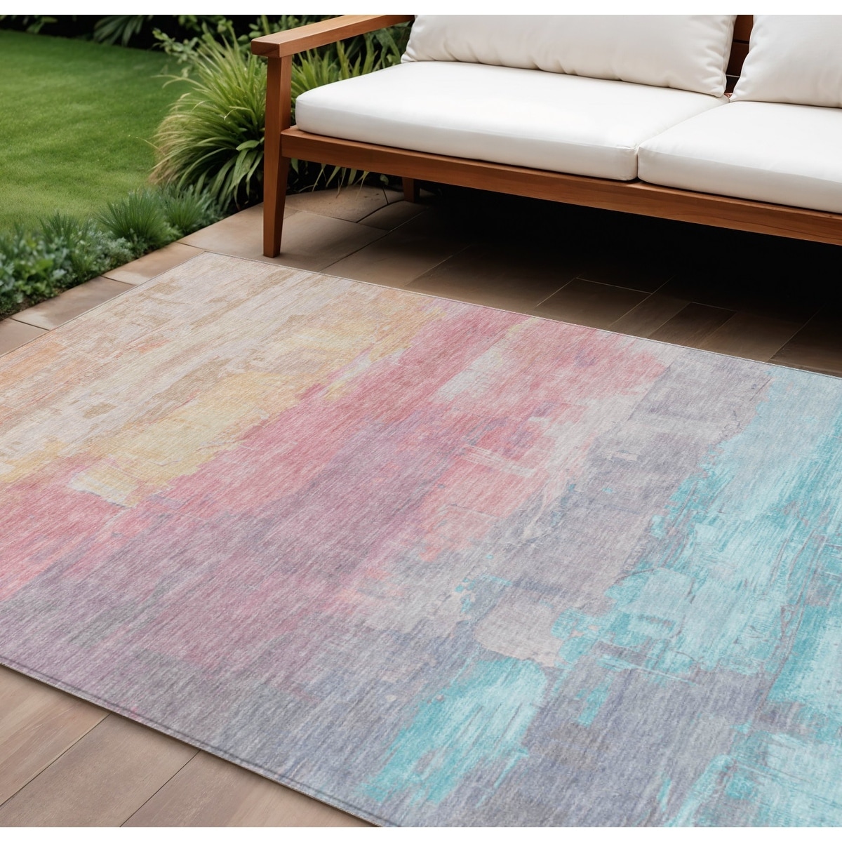 Machine Washable Indoor/ Outdoor Abstract Chantille Rug