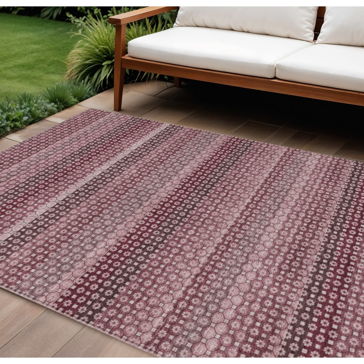 8' X 10' Red And Burgundy Striped Washable Indoor Outdoor Area Rug - 9' x 12'