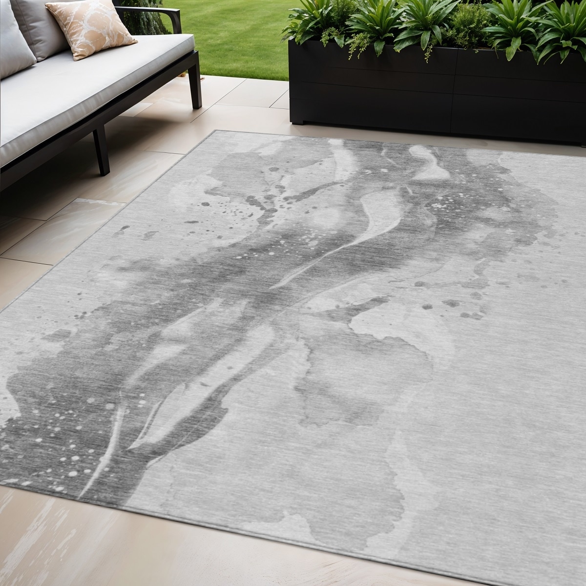 5' X 8' Gray And Silver Abstract Washable Indoor Outdoor Area Rug - 5' x 8'