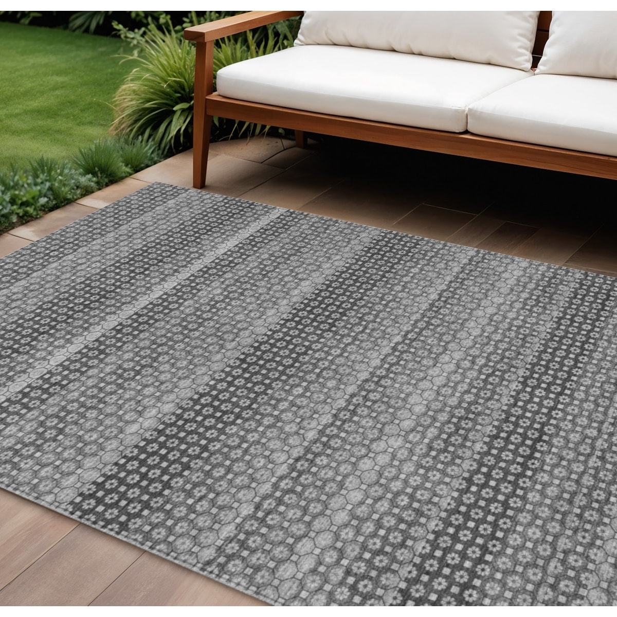 8' X 10' Gray And Silver Striped Washable Indoor Outdoor Area Rug - 9' x 12'