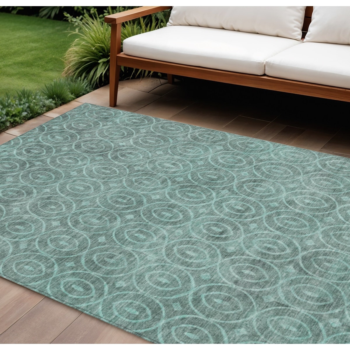 5' X 8' Teal Blue Geometric Washable Indoor Outdoor Area Rug - 5' x 8'