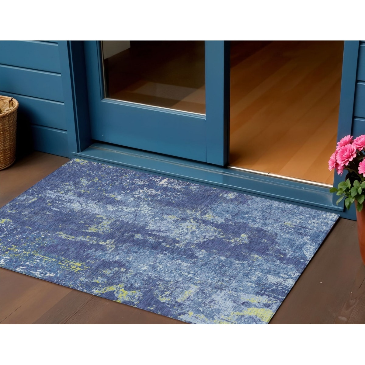 3' X 5' Navy Blue And Denim Blue Abstract Washable Indoor Outdoor Area Rug - 3' x 6'