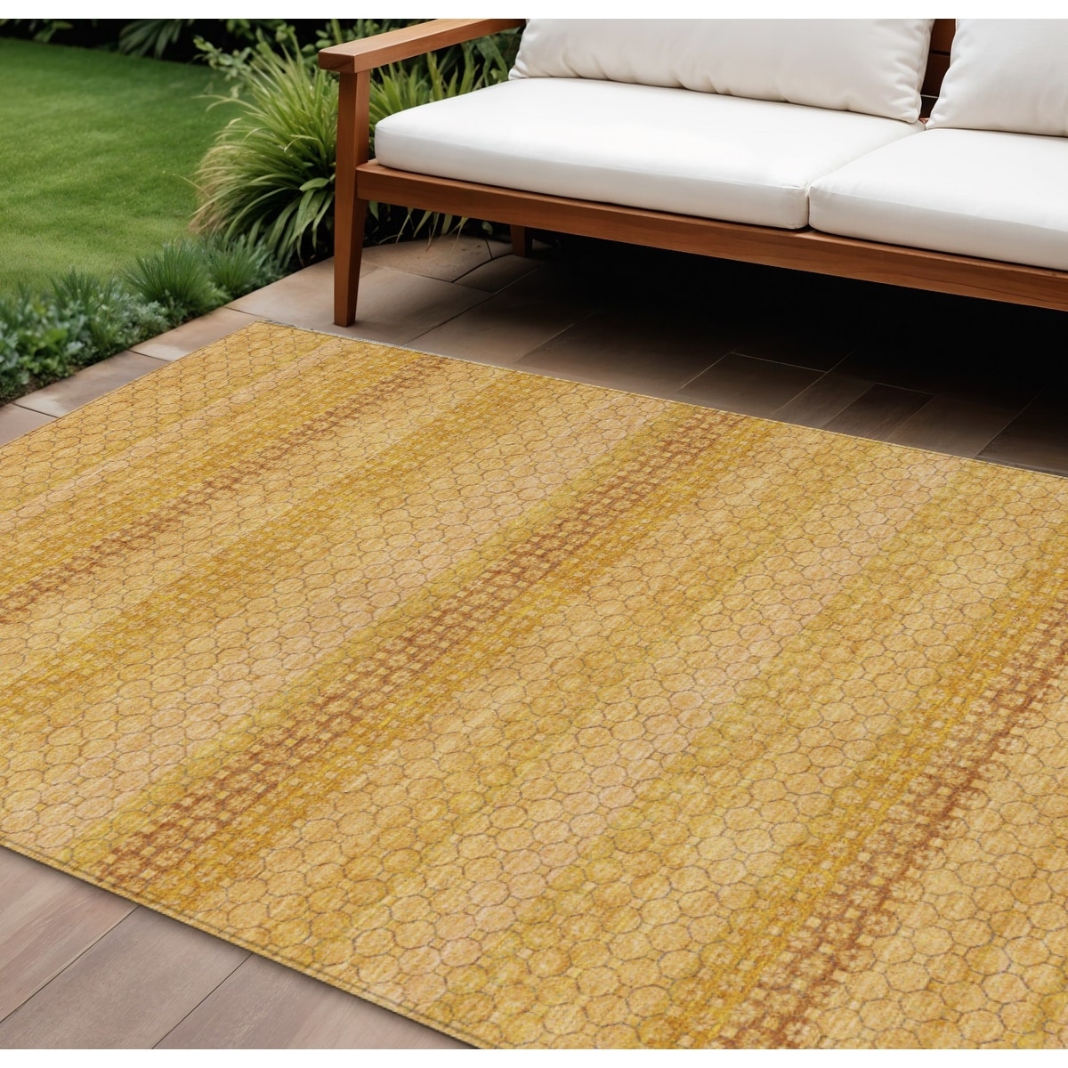 9' X 12' Wheat And Gold Striped Washable Indoor Outdoor Area Rug - 9' x 12'